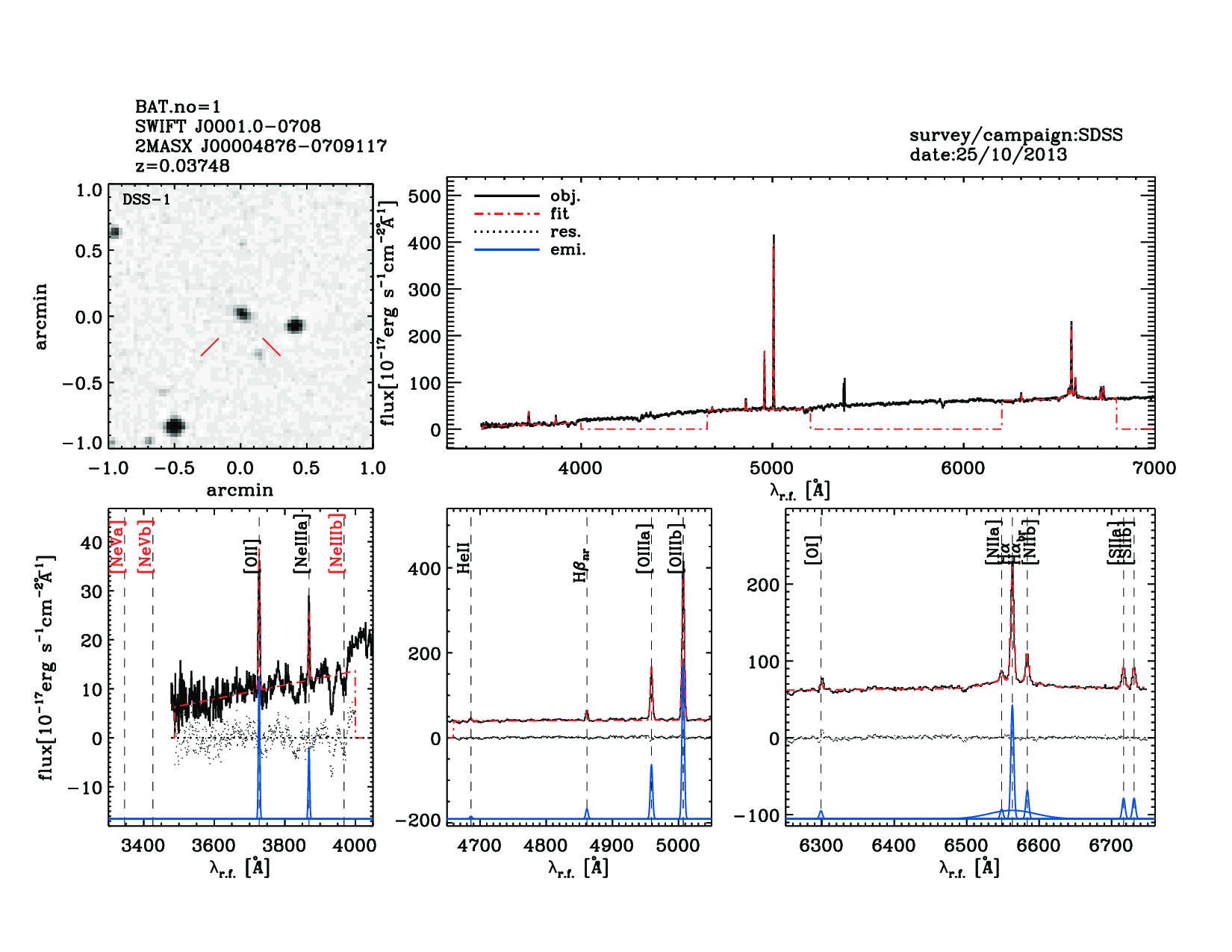 | 1 | SWIFT J0001.0-0708 | 2MASX J00004876-0709117 | 0.2032 | -7.1532 | 0.03748 | 7.30 | 13.00 | 8.40 | 12.30 | 22.19[22.11-22.26] | 1.64(0.60,0.18) | optical | NED |
