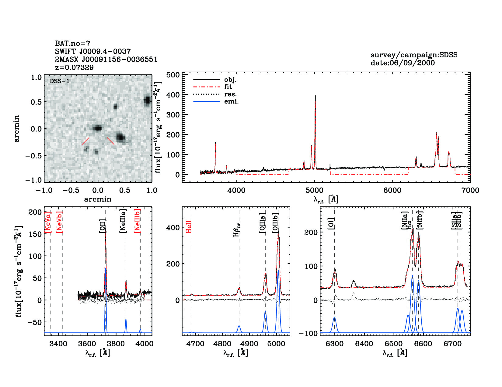 | 7 | SWIFT J0009.4-0037 | 2MASX J00091156-0036551 | 2.2982 | -0.6152 | 0.07329 | 0.80 | 9.30 | 3.10 | 12.10 | 23.56[23.41-23.70] | 1.66(0.29,0.27) | optical | NED |