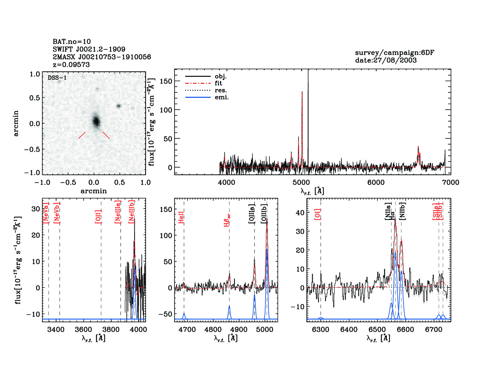| 10 | SWIFT J0021.2-1909 | 2MASX J00210753-1910056 | 5.2814 | -19.1682 | 0.09573 | 10.60 | 17.30 | 11.20 | 16.00 | 21.98[21.92-22.08] | 1.70(0.22,0.13) | optical | NED |