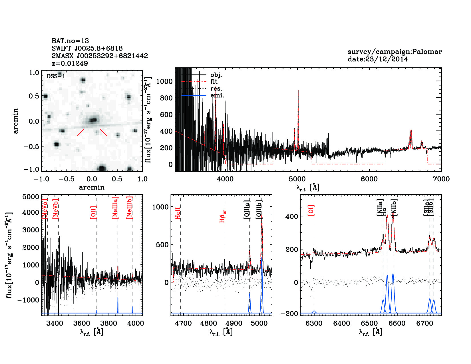 | 13 | SWIFT J0025.8+6818 | 2MASX J00253292+6821442 | 6.387 | 68.3623 | 0.01249 | 0.70 | 18.20 | 42.60 | 35.40 | 24.14[23.72-24.32] | 1.94(0.27,0.56) | optical | NED |