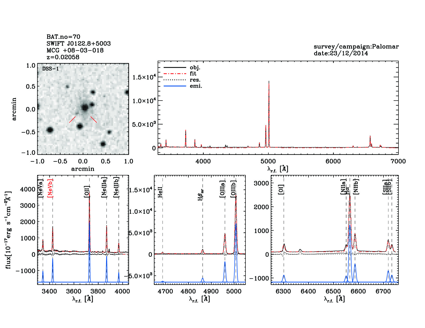 | 70 | SWIFT J0122.8+5003 | MCG +08-03-018 | 20.6435 | 50.055 | 0.02058 | 1.30 | 12.60 | 99.40 | 28.50 | 24.24[24.09-24.58] | 2.81(0.16,0.15) | optical | NED |
