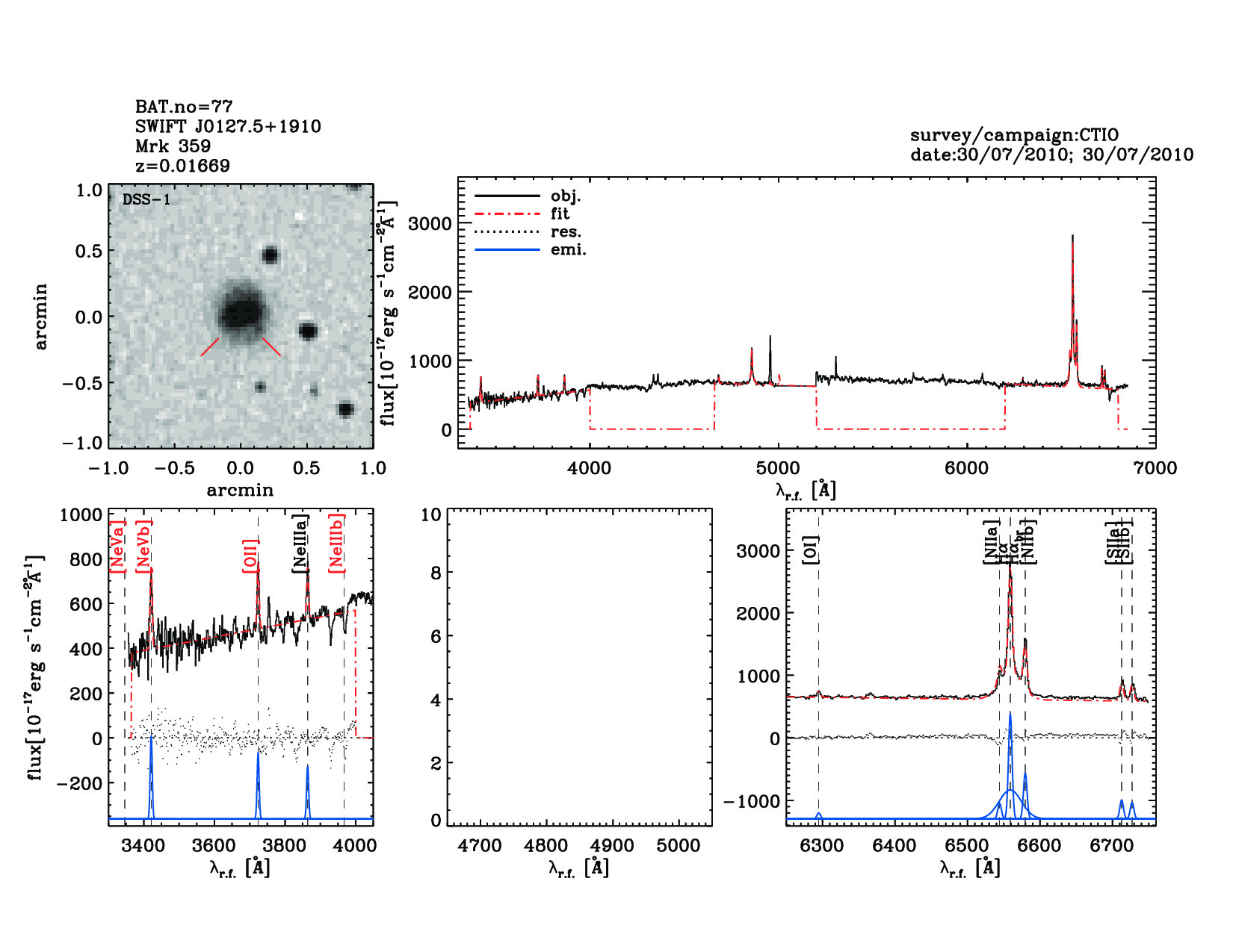 | 77 | SWIFT J0127.5+1910 | Mrk 359 | 21.8856 | 19.1788 | 0.01669 | 7.20 | 13.30 | 7.30 | 12.80 | 20.61[20.52-20.78] | 2.08(0.18,0.08) | optical | NED |