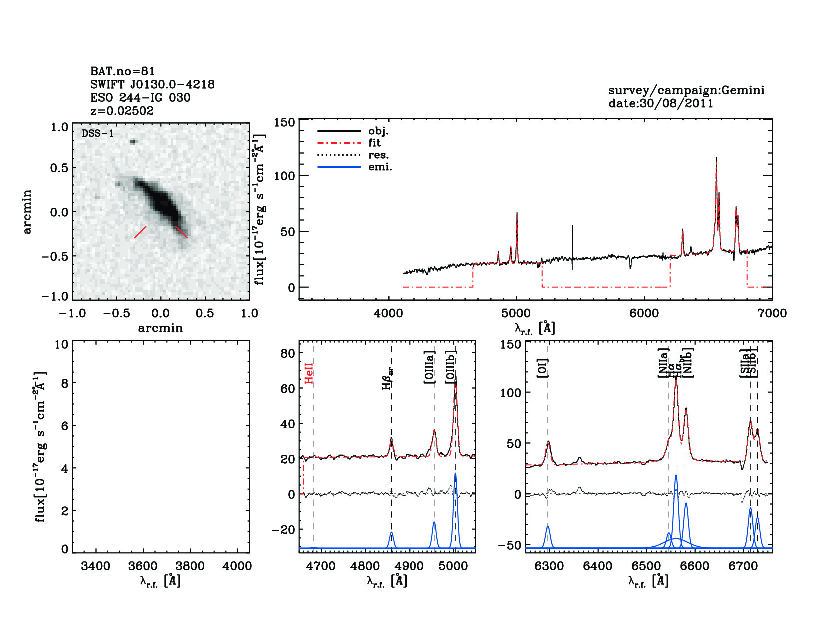 | 81 | SWIFT J0130.0-4218 | ESO 244-IG 030 | 22.4636 | -42.3265 | 0.02502 | 0.50 | 8.90 | 31.50 | 19.90 | 24.20[24.02-24.55] | 2.45(0.35,0.15) | optical | NED |