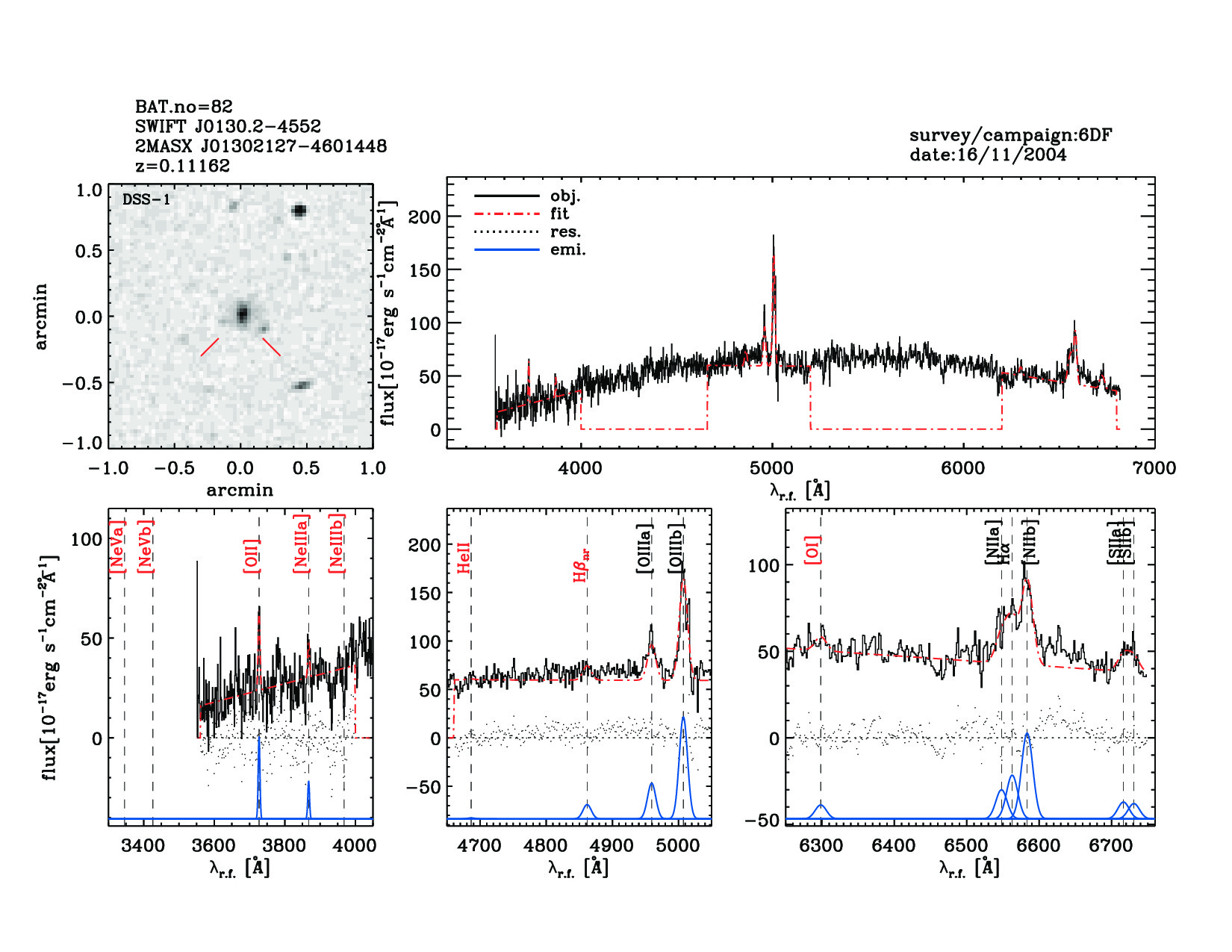 | 82 | SWIFT J0130.2-4552 | 2MASX J01302127-4601448 | 22.5887 | -46.0292 | 0.11162 | 0.80 | 6.70 | 0.80 | 5.90 | 20.00[20.00-20.00] | 0.60(0.46,0.43) | optical | NED |