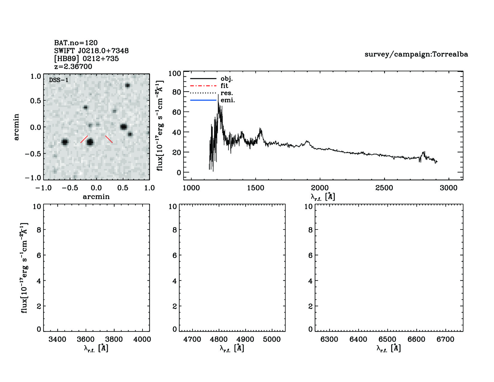 | 120 | SWIFT J0218.0+7348 | [HB89] 0212+735 | 34.3784 | 73.8257 | 2.36700 | 6.00 | 34.50 | 6.00 | 38.50 | 23.31[23.14-23.45] | 1.51(0.33,0.05) | optical | NED |