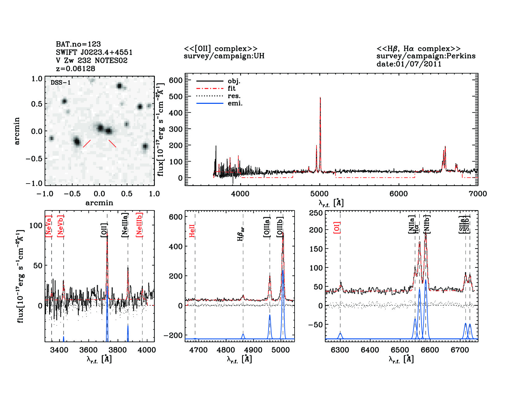 | 123 | SWIFT J0223.4+4551 | V Zw 232 NOTES02 | 35.8878917 | 45.821175 | 0.06128 | 3.00 | 14.70 | 5.20 | 15.70 | 22.97[22.71-23.08] | 1.67(0.10,0.51) | optical | NED |