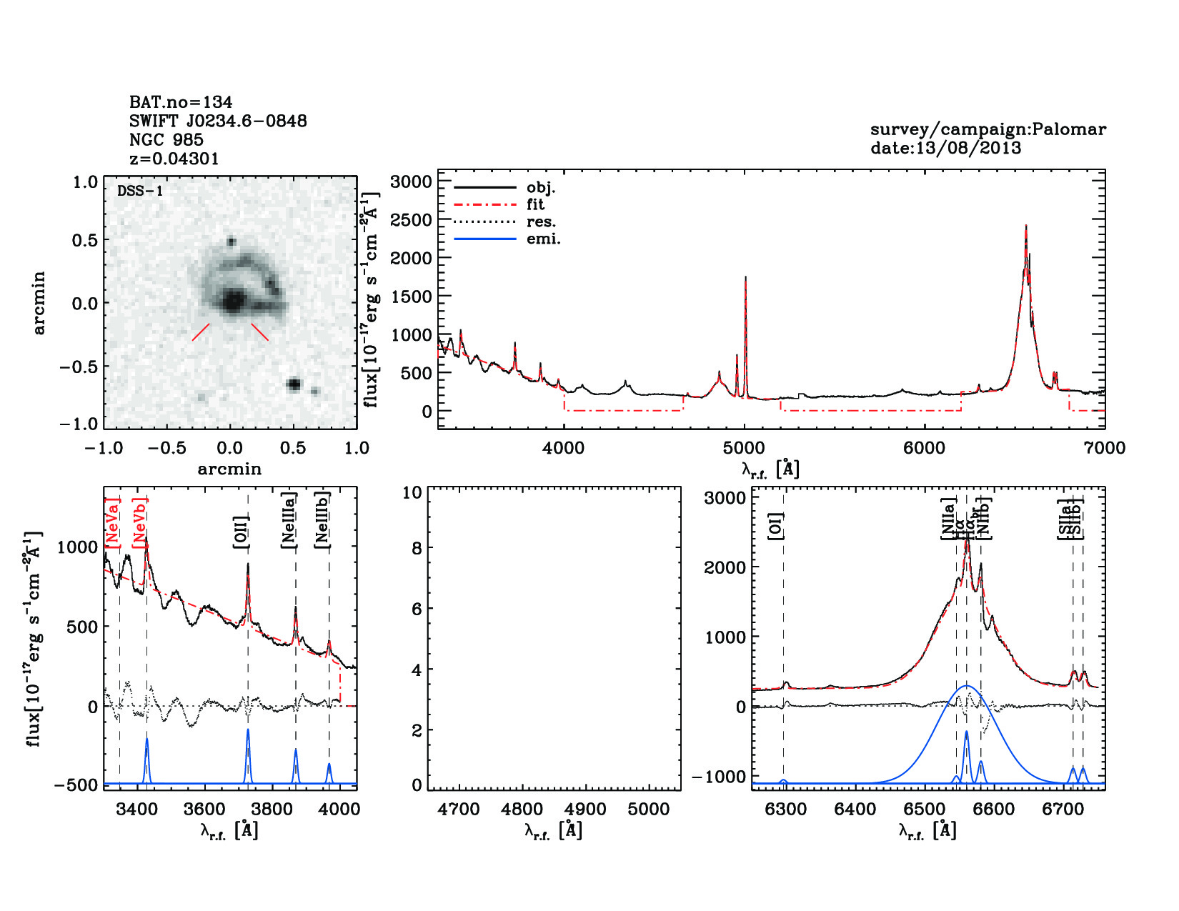 | 134 | SWIFT J0234.6-0848 | NGC 985 | 38.6574 | -8.7876 | 0.04301 | 13.80 | 31.90 | 13.90 | 30.60 | 20.92[20.86-21.01] | 2.12(0.14,0.23) | optical | NED |