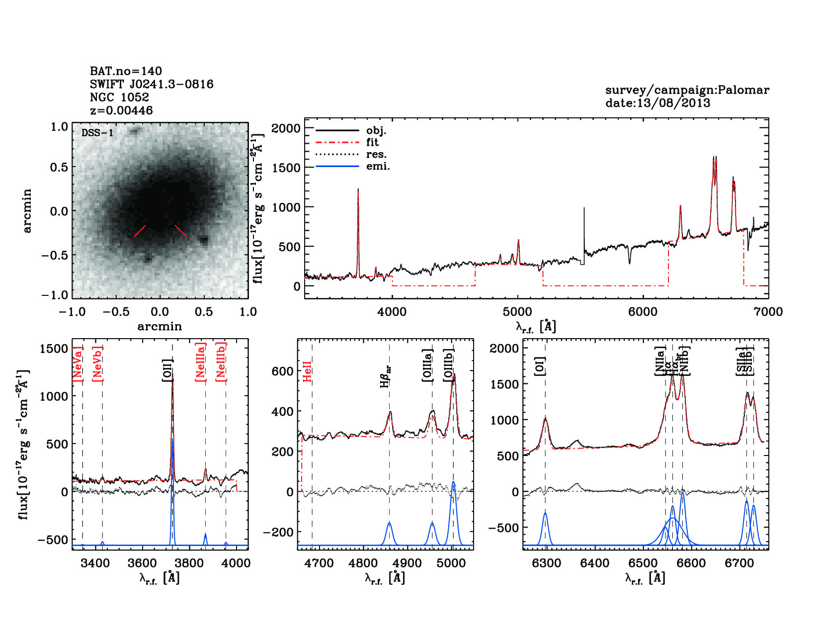 | 140 | SWIFT J0241.3-0816 | NGC 1052 | 40.27 | -8.2558 | 0.00446 | 5.20 | 29.50 | 7.50 | 27.40 | 22.95[22.94-22.97] | 1.44(0.08,0.07) | optical | NIR | NED |