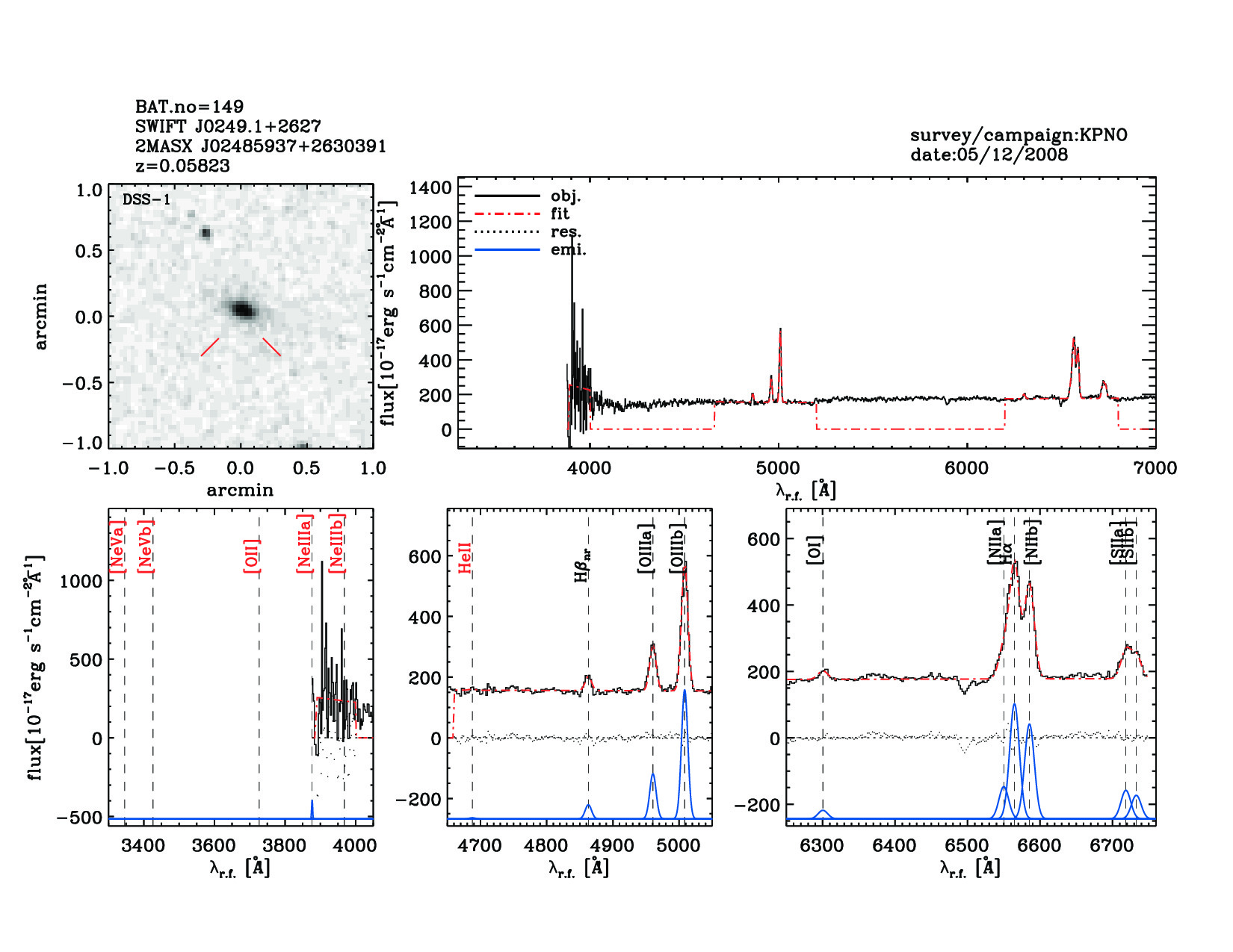 | 149 | SWIFT J0249.1+2627 | 2MASX J02485937+2630391 | 42.2472 | 26.5109 | 0.05823 | 3.70 | 34.00 | 16.00 | 40.20 | 23.59[23.46-23.68] | 1.78(0.19,0.93) | optical | NED |