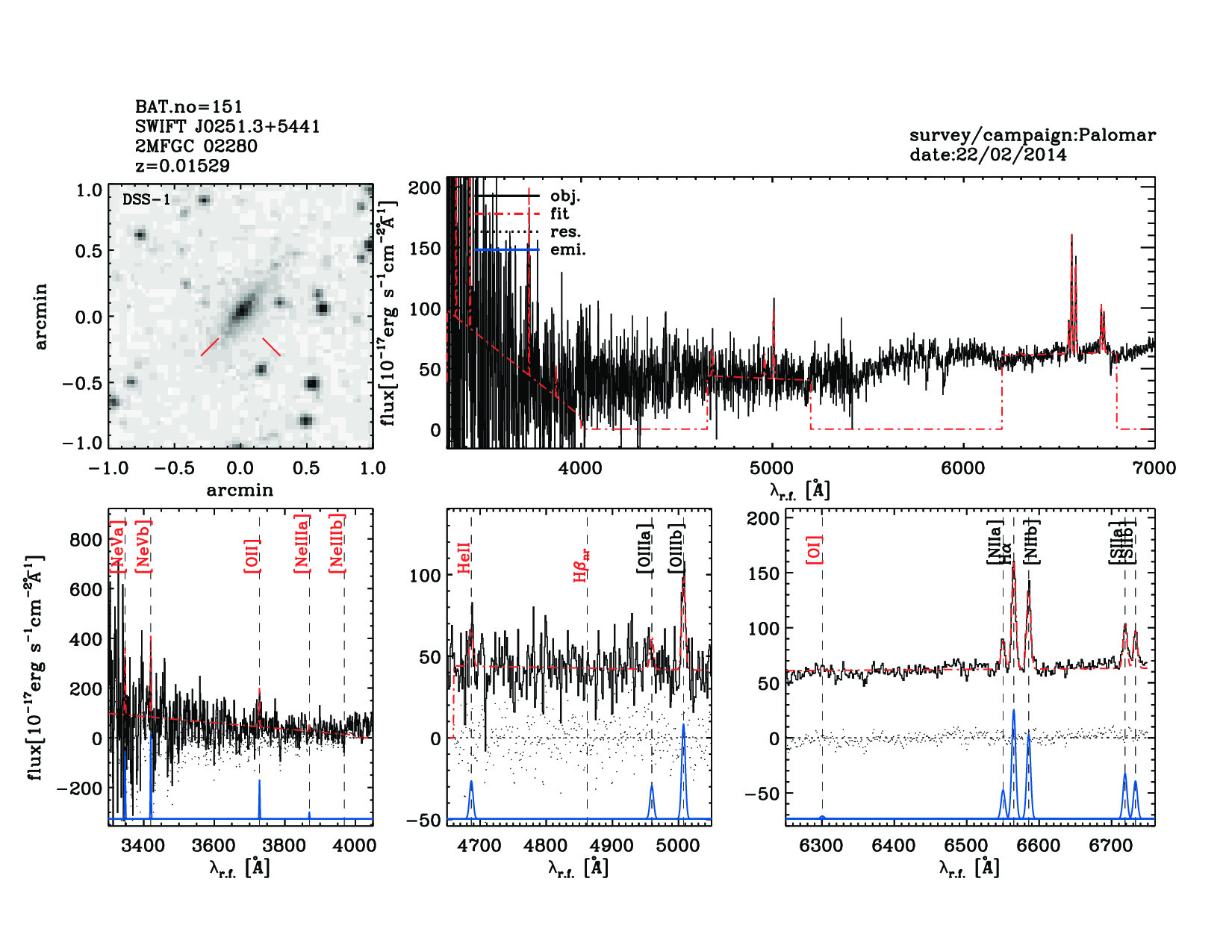 | 151 | SWIFT J0251.3+5441 | 2MFGC 02280 | 42.6775 | 54.7049 | 0.01529 | 0.50 | 27.10 | 20.10 | 51.00 | 24.06[23.96-24.18] | 1.86(0.13,0.21) | optical | NED |