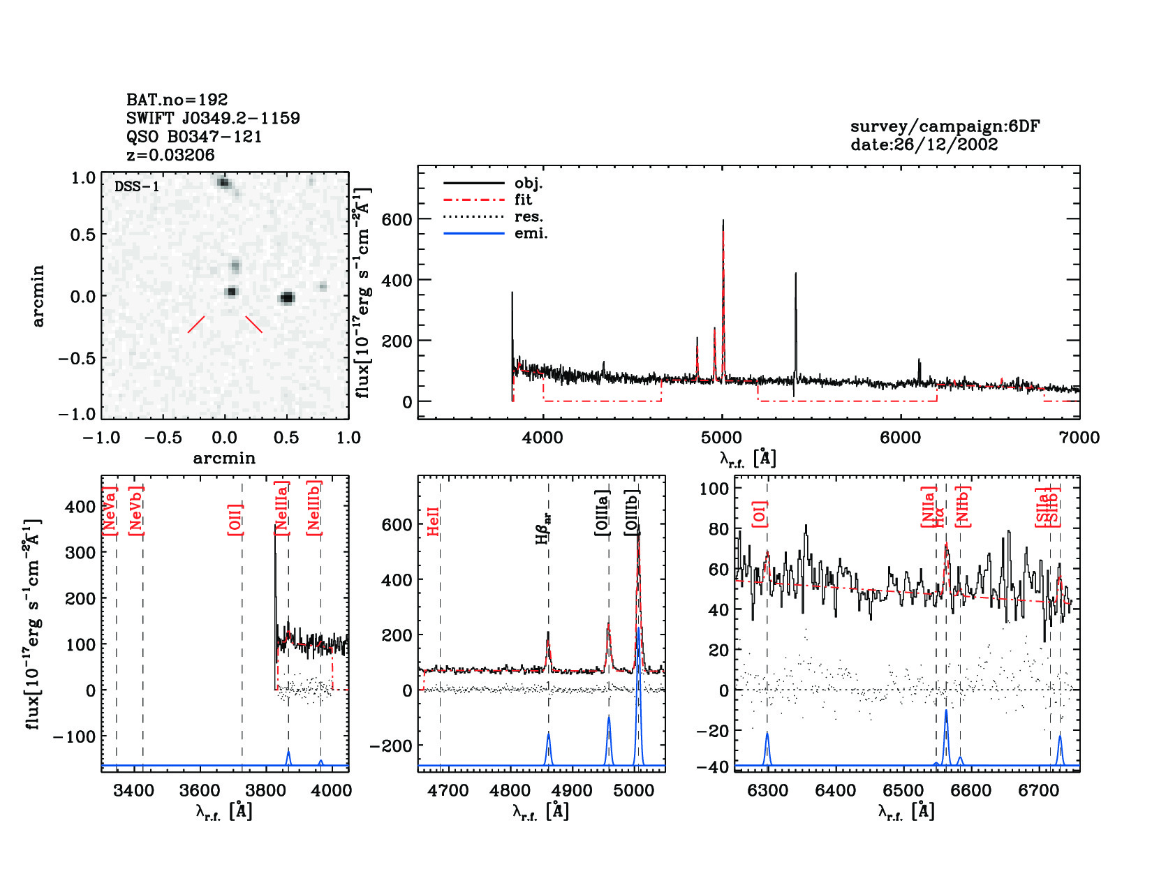 | 192 | SWIFT J0349.2-1159 | QSO B0347-121 | 57.3467 | -11.9908 | 0.03206 | 18.60 | 16.60 | 18.50 | 17.60 | 20.85[20.72-20.95] | 2.25(0.04,0.04) | optical | NED |
