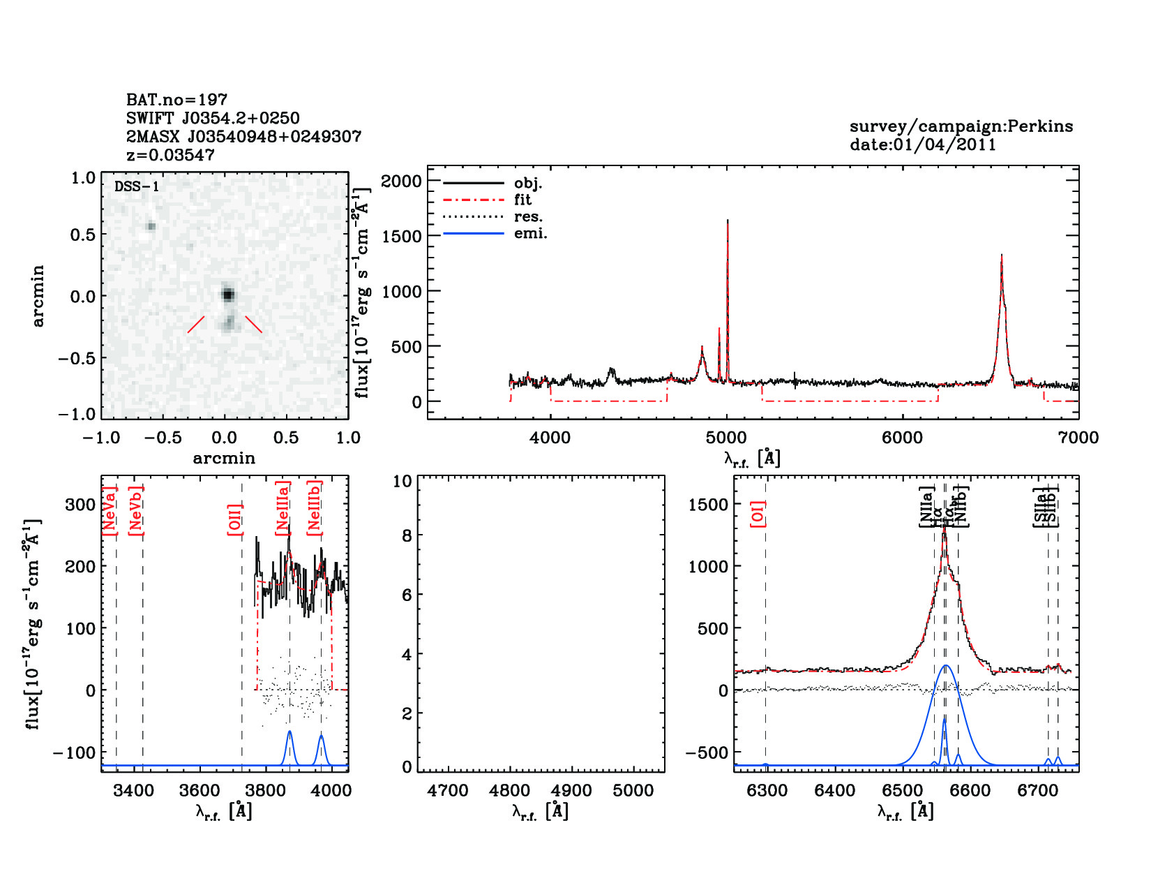 | 197 | SWIFT J0354.2+0250 | 2MASX J03540948+0249307 | 58.5395 | 2.8252 | 0.03547 | 6.70 | 12.90 | 6.80 | 12.70 | 20.00[20.00-20.00] | 1.31(0.04,0.05) | optical | NED |