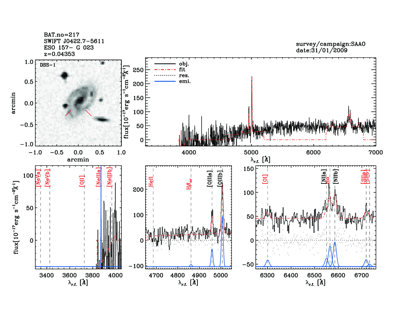 | 217 | SWIFT J0422.7-5611 | ESO 157- G 023 | 65.6007 | -56.226 | 0.04353 | 3.40 | 21.20 | 5.20 | 20.50 | 22.89[22.76-23.00] | 1.38(0.17,0.26) | optical | NED |