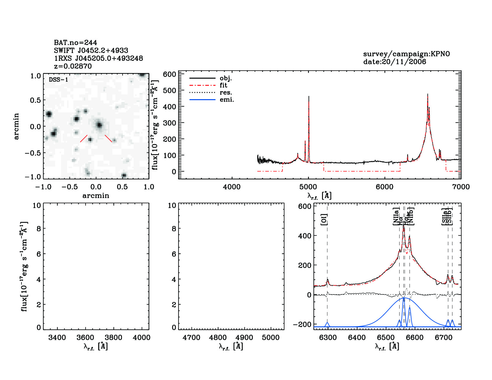 | 244 | SWIFT J0452.2+4933 | 1RXS J045205.0+493248 | 73.0208 | 49.5459 | 0.02870 | 23.70 | 63.20 | 25.10 | 58.70 | 21.23[21.04-21.28] | 1.75(0.09,0.07) | optical | NED |