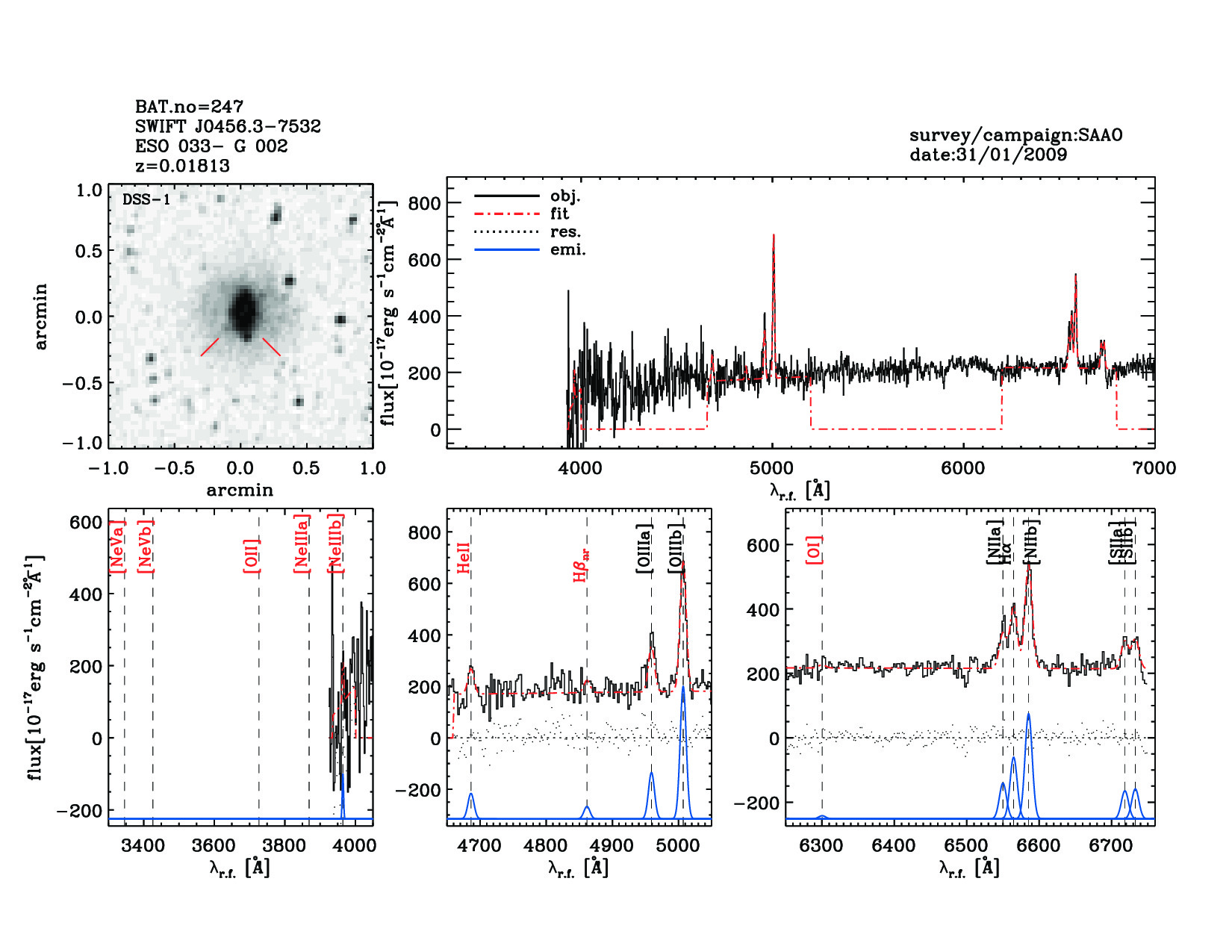 | 247 | SWIFT J0456.3-7532 | ESO 033- G 002 | 73.9957 | -75.5412 | 0.01813 | 1.40 | 21.30 | 1.80 | 22.90 | 22.51[22.20-22.91] | 1.82(0.14,0.21) | optical | NED |