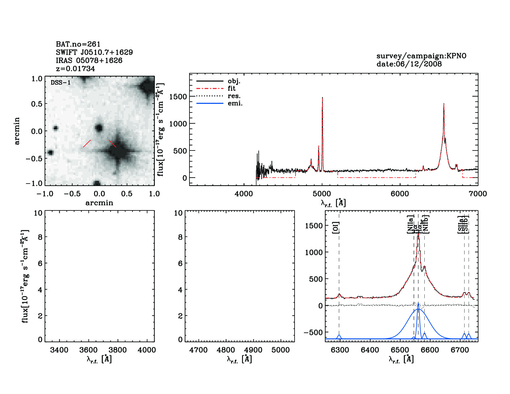 | 261 | SWIFT J0510.7+1629 | IRAS 05078+1626 | 77.6896 | 16.4989 | 0.01734 | 24.00 | 90.60 | 46.10 | 92.30 | 21.08[20.98-21.15] | 1.77(0.04,0.02) | optical | NED |
