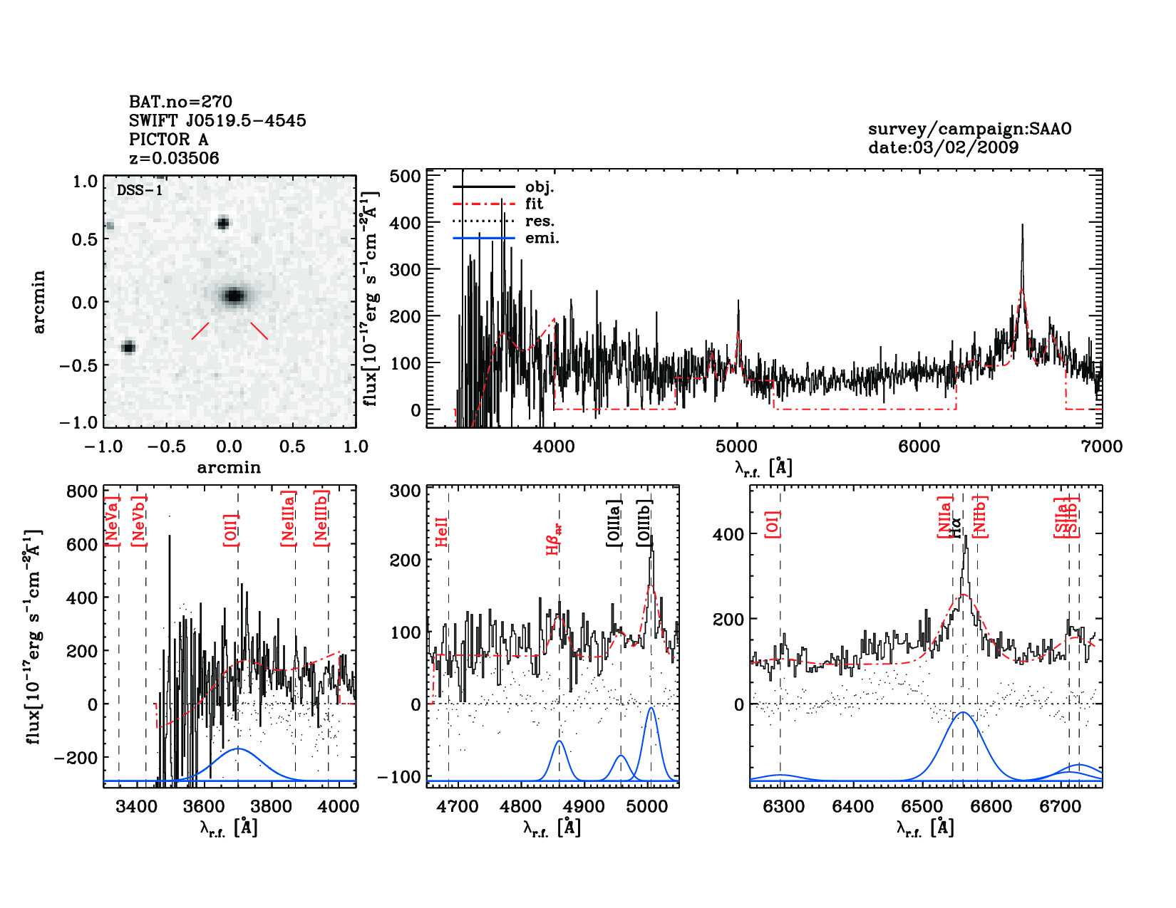 | 270 | SWIFT J0519.5-4545 | PICTOR A | 79.957 | -45.779 | 0.03506 | 9.80 | 38.60 | 9.80 | 38.30 | 20.49[20.32-20.61] | 1.79(0.04,0.04) | optical | NED |