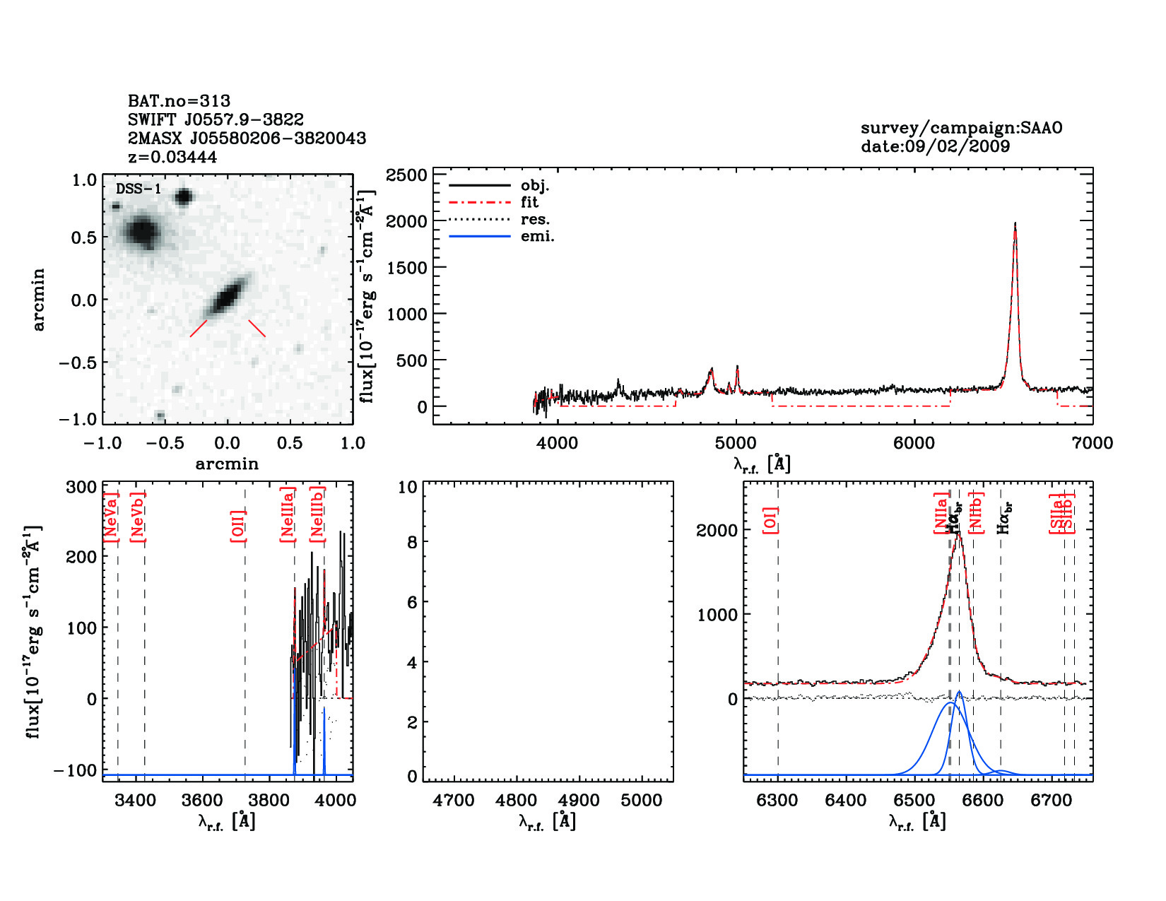 | 313 | SWIFT J0557.9-3822 | 2MASX J05580206-3820043 | 89.5083 | -38.3346 | 0.03444 | 42.50 | 29.30 | 45.60 | 28.60 | 20.00[20.00-20.00] | 1.70(0.05,0.03) | optical | NED |