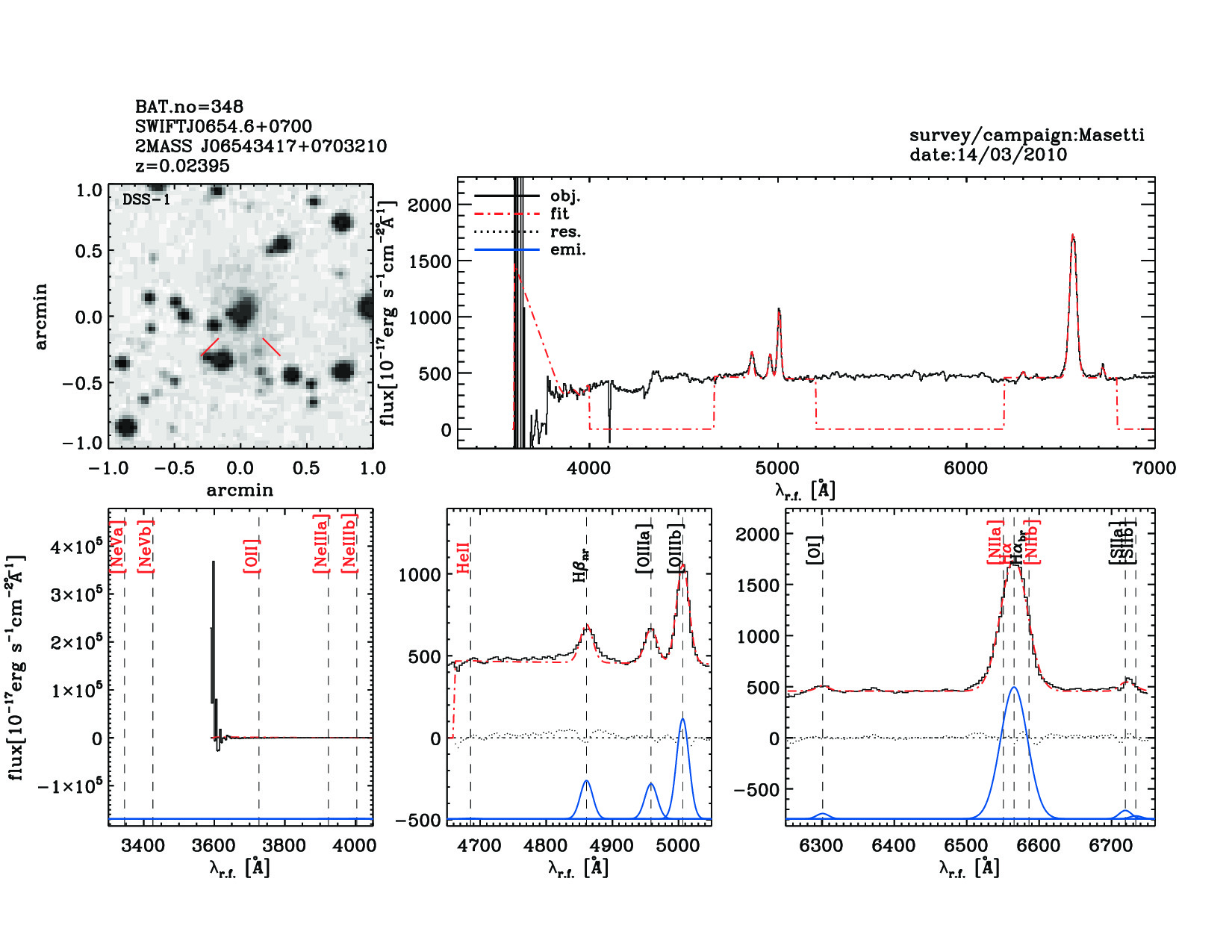 | 348 | SWIFTJ0654.6+0700 | 2MASS J06543417+0703210 | 103.6424167 | 7.0558333 | 0.02395 | 9.00 | 18.00 | 9.30 | 18.50 | 21.32[21.20-21.67] | 1.69(0.42,0.18) | optical | NED |