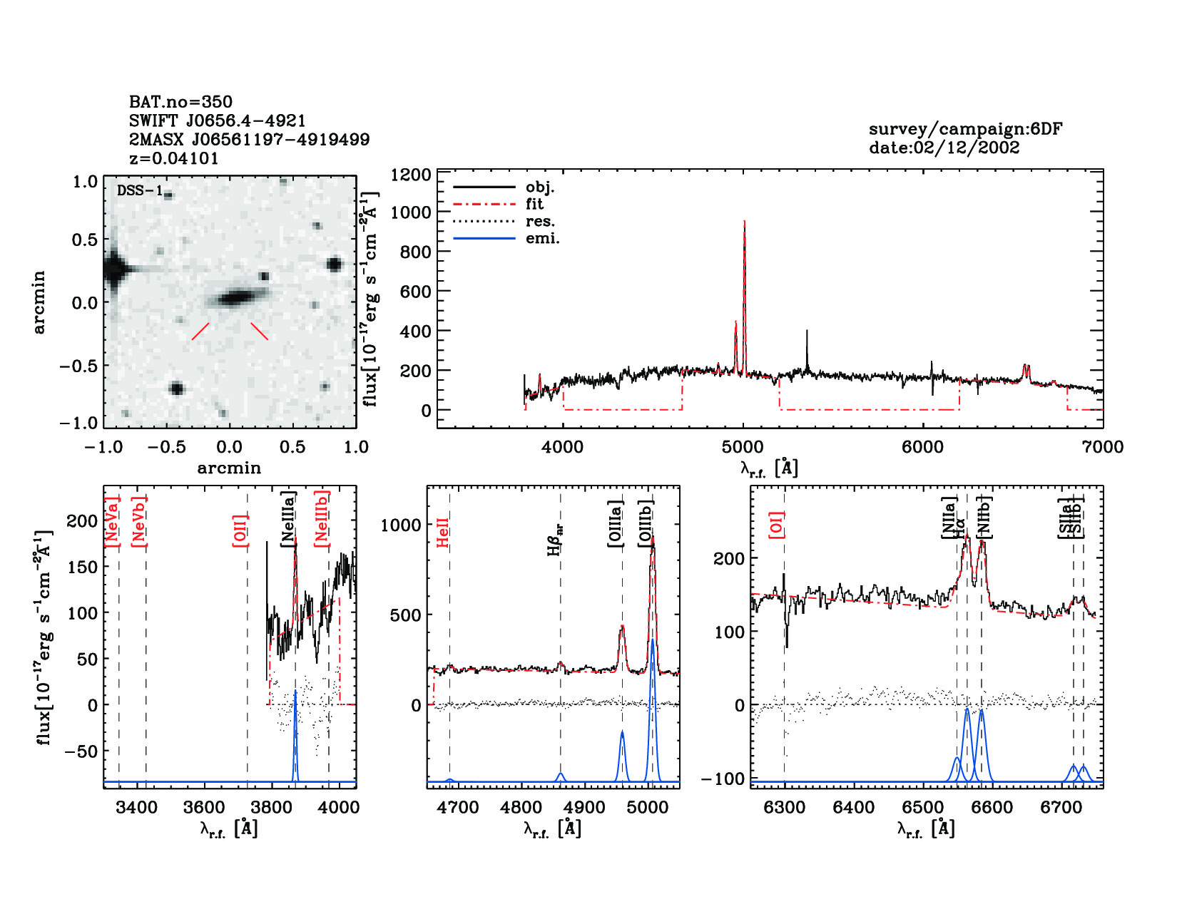 | 350 | SWIFT J0656.4-4921 | 2MASX J06561197-4919499 | 104.0498 | -49.3306 | 0.04101 | 0.40 | 12.20 | 7.70 | 17.10 | 24.03[23.93-24.33] | 1.91(0.31,0.25) | optical | NED |