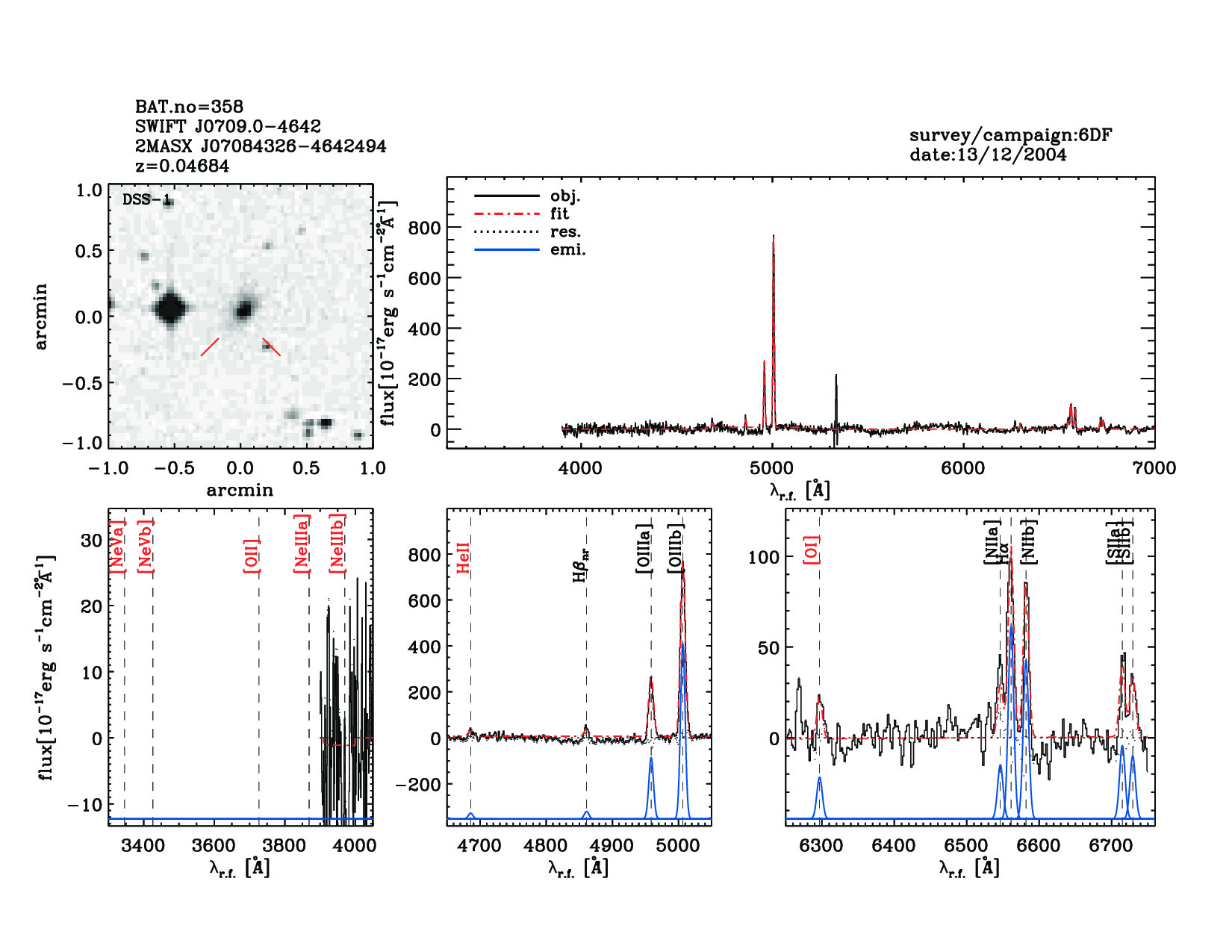 | 358 | SWIFT J0709.0-4642 | 2MASX J07084326-4642494 | 107.1803 | -46.7137 | 0.04684 | 3.80 | 13.80 | 4.50 | 13.40 | 22.40[22.28-22.56] | 1.78(0.51,0.42) | optical | NED |