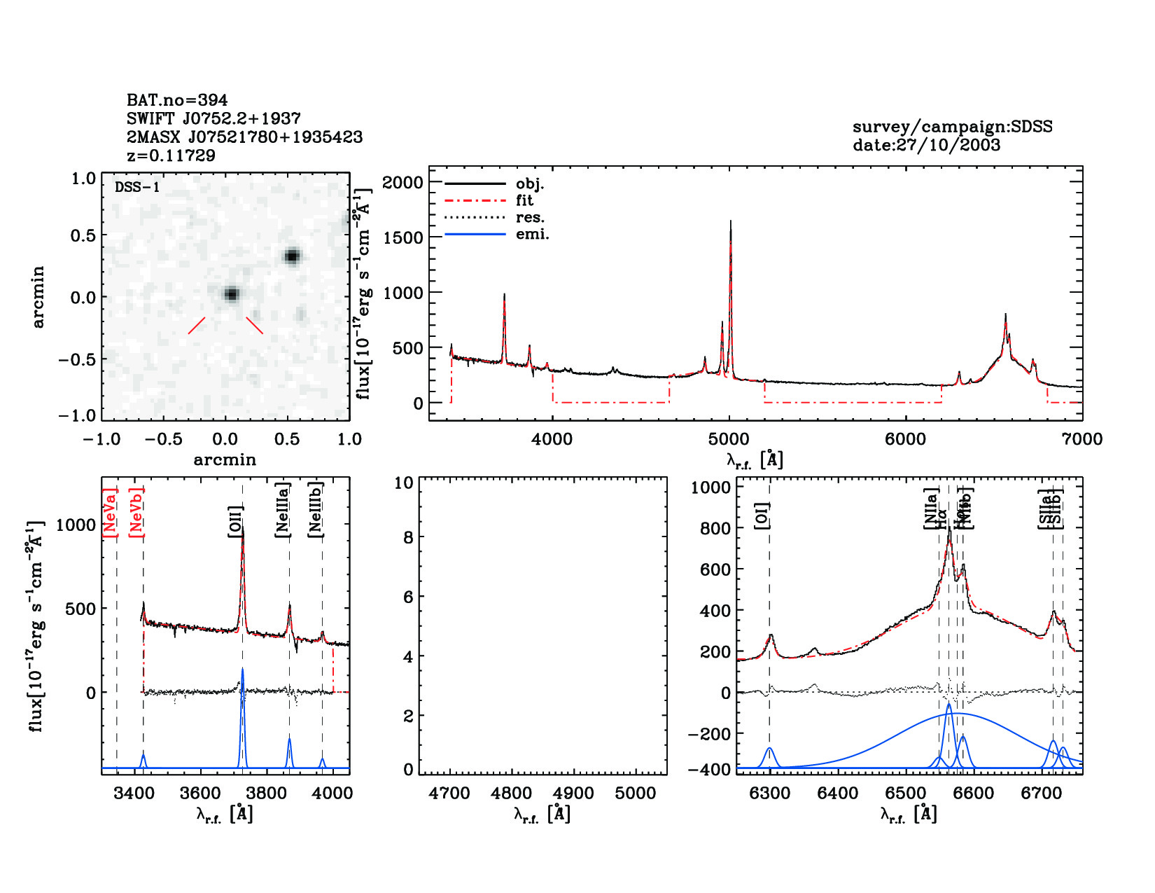 | 394 | SWIFT J0752.2+1937 | 2MASX J07521780+1935423 | 118.0743 | 19.5951 | 0.11729 | 5.40 | 15.70 | 6.10 | 13.60 | 22.54[22.45-22.65] | 1.28(0.33,0.21) | optical | NED |