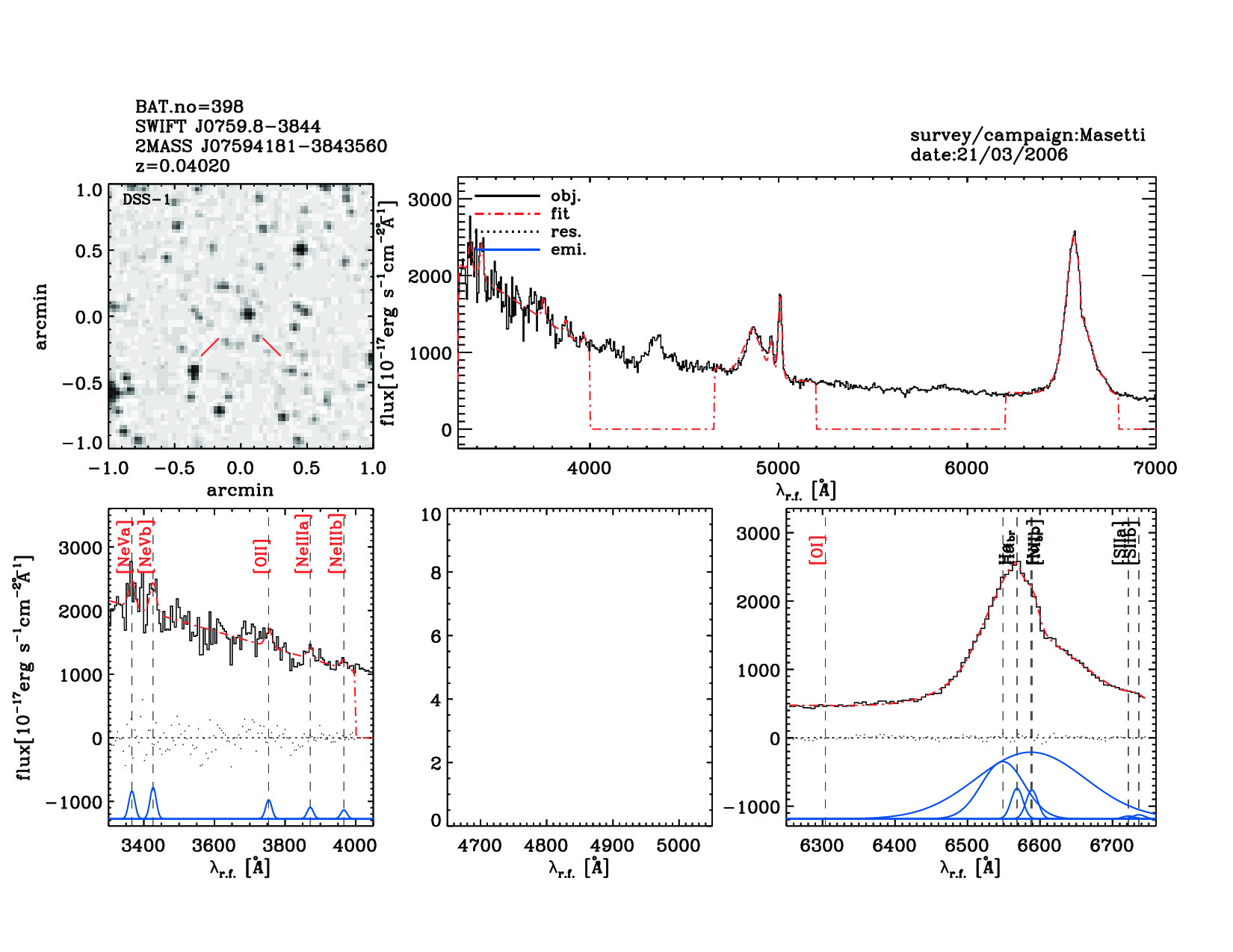 | 398 | SWIFT J0759.8-3844 | 2MASS J07594181-3843560 | 119.9242 | -38.7322 | 0.04020 | 15.10 | 50.60 | 15.60 | 49.00 | 20.00[20.00-20.00] | 1.51(0.03,0.03) | optical | NED |
