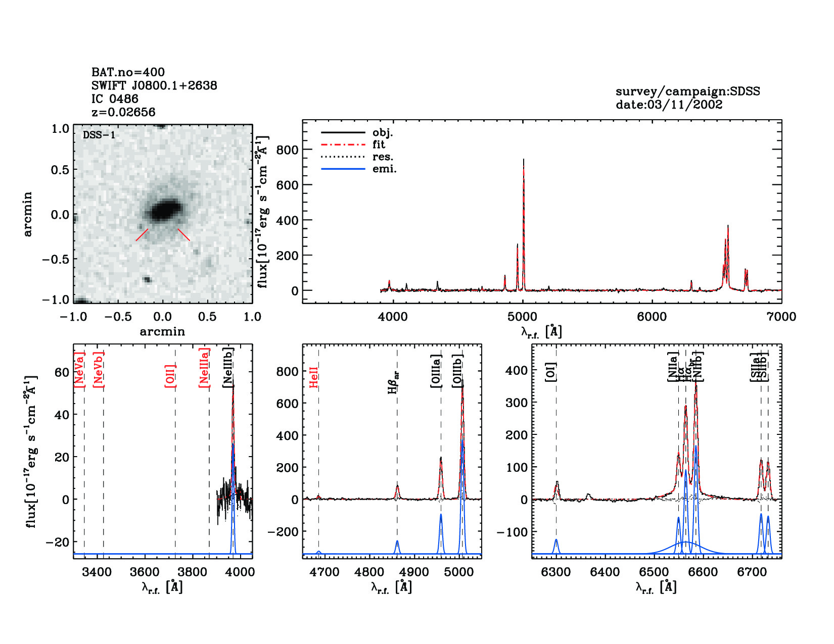 | 400 | SWIFT J0800.1+2638 | IC 0486 | 120.0874 | 26.6135 | 0.02656 | 3.90 | 32.20 | 4.00 | 29.90 | 22.06[21.95-22.18] | 1.33(0.49,0.15) | optical | NED |