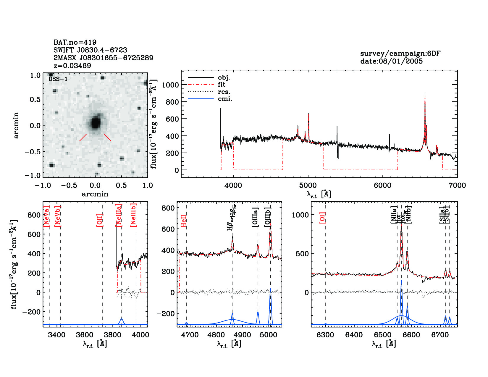 | 419 | SWIFT J0830.4-6723 | 2MASX J08301655-6725289 | 127.5689 | -67.4248 | 0.03469 | 3.00 | 8.00 | 12.00 | 11.70 | 23.76[23.60-23.95] | 2.25(0.09,0.04) | optical | NED |