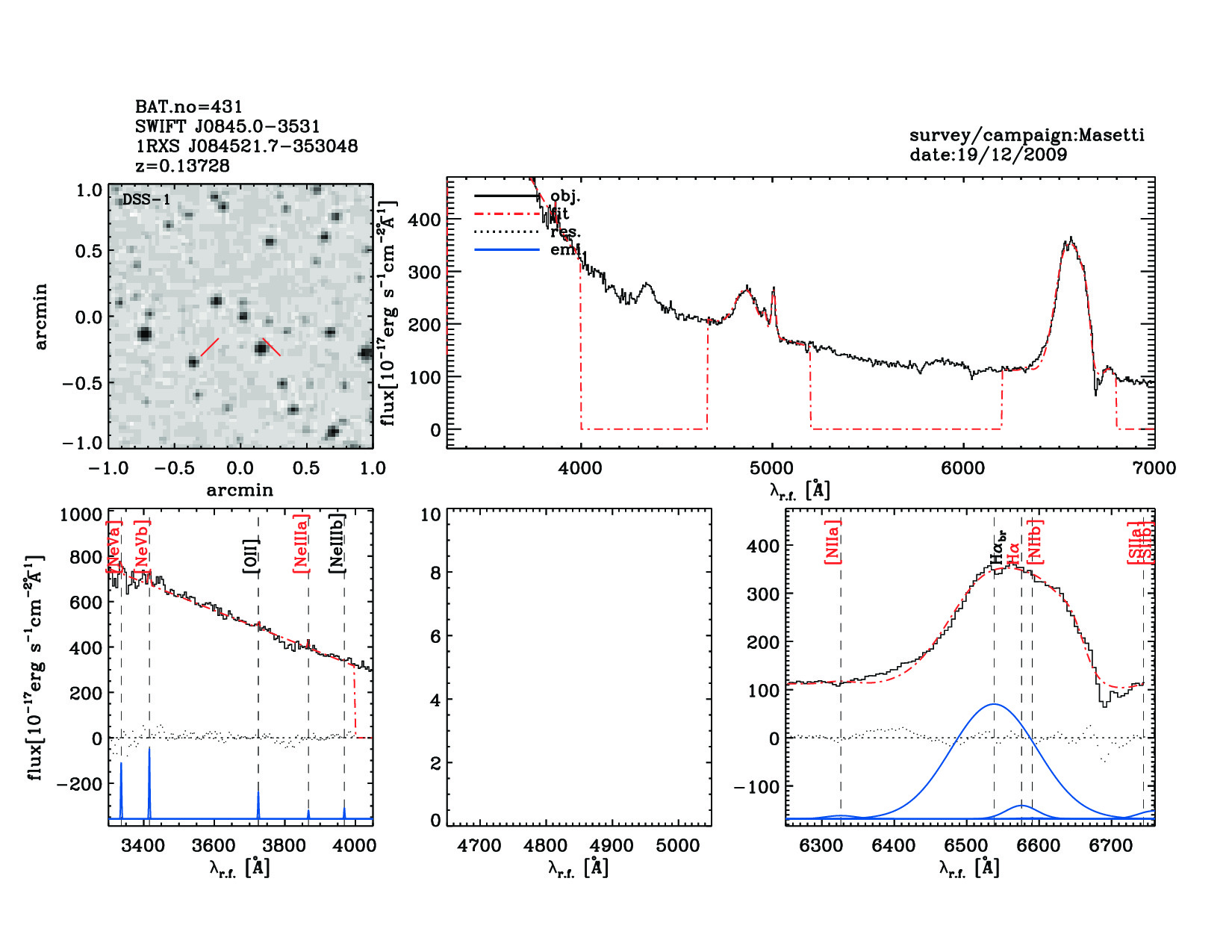 | 431 | SWIFT J0845.0-3531 | 1RXS J084521.7-353048 | 131.3390667 | -35.5067278 | 0.13728 | 5.20 | 12.80 | 6.10 | 12.50 | 20.00[20.00-20.00] | 1.89(0.49,0.52) | optical | NED |