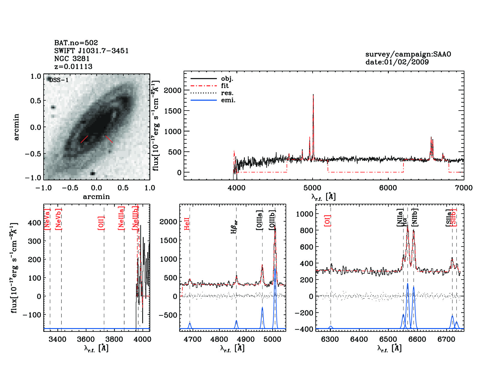 | 502 | SWIFT J1031.7-3451 | NGC 3281 | 157.967 | -34.8537 | 0.01113 | 2.60 | 86.40 | 52.00 | 117.00 | 23.98[23.95-24.02] | 2.18(0.11,0.05) | optical | NED |