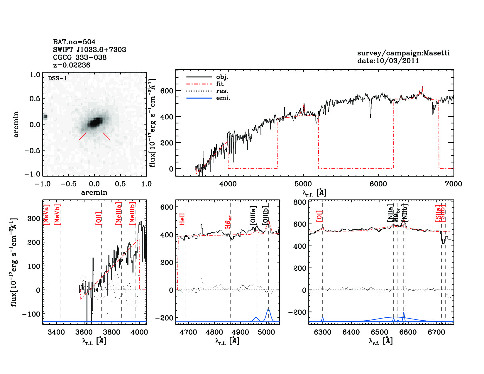 | 504 | SWIFT J1033.6+7303 | CGCG 333-038 | 158.5981 | 73.014 | 0.02236 | 2.60 | 12.80 | 3.60 | 13.40 | 22.62[22.41-22.79] | 1.53(0.19,0.25) | optical | NED |