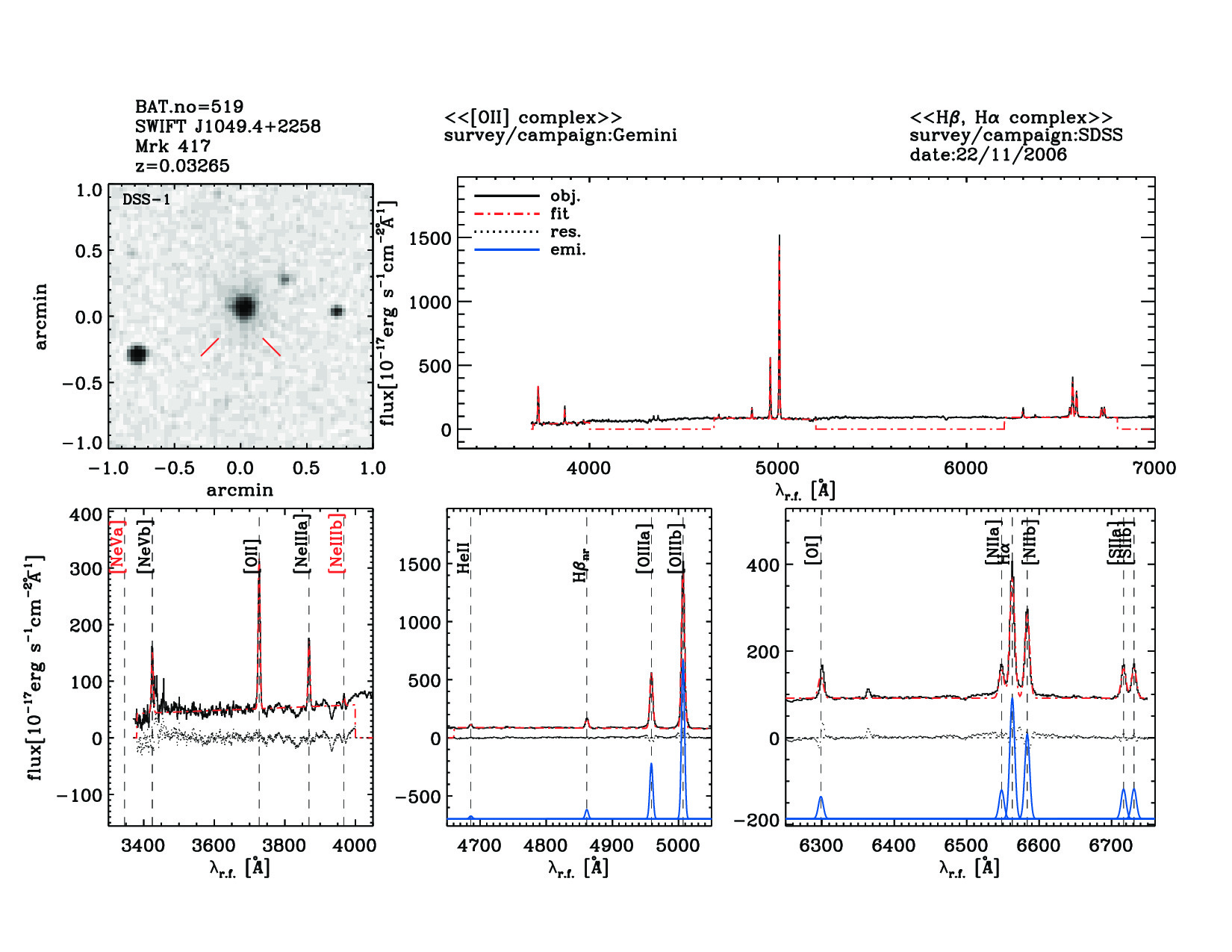 | 519 | SWIFT J1049.4+2258 | Mrk 417 | 162.3789 | 22.9644 | 0.03265 | 1.60 | 32.40 | 21.70 | 50.00 | 23.90[23.81-23.98] | 1.86(0.06,0.29) | optical | NED |