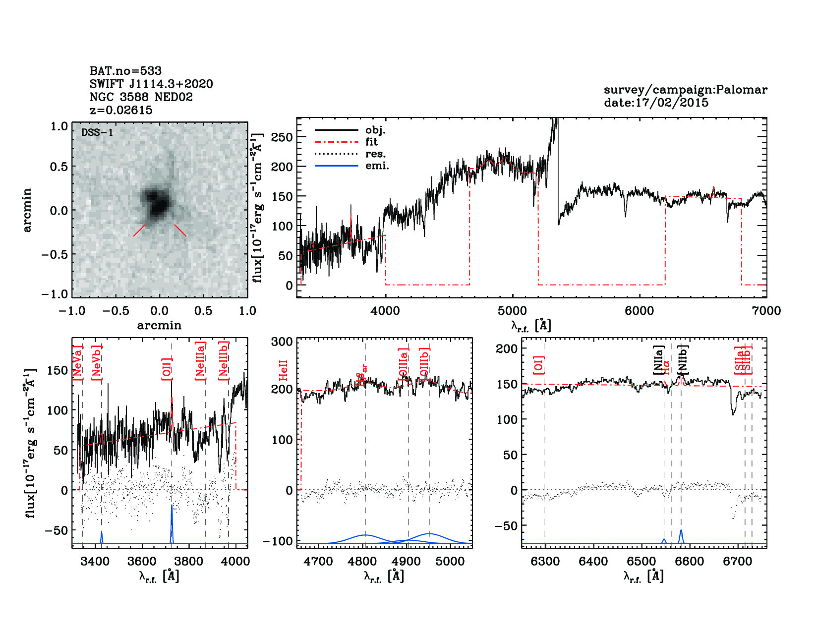 | 533 | SWIFT J1114.3+2020 | NGC 3588 NED02 | 168.5103 | 20.3873 | 0.02615 | 0.50 | 9.50 | 11.60 | 10.20 | 23.30[22.95-23.60] | 1.92(0.60,0.46) | optical | NIR | NED |