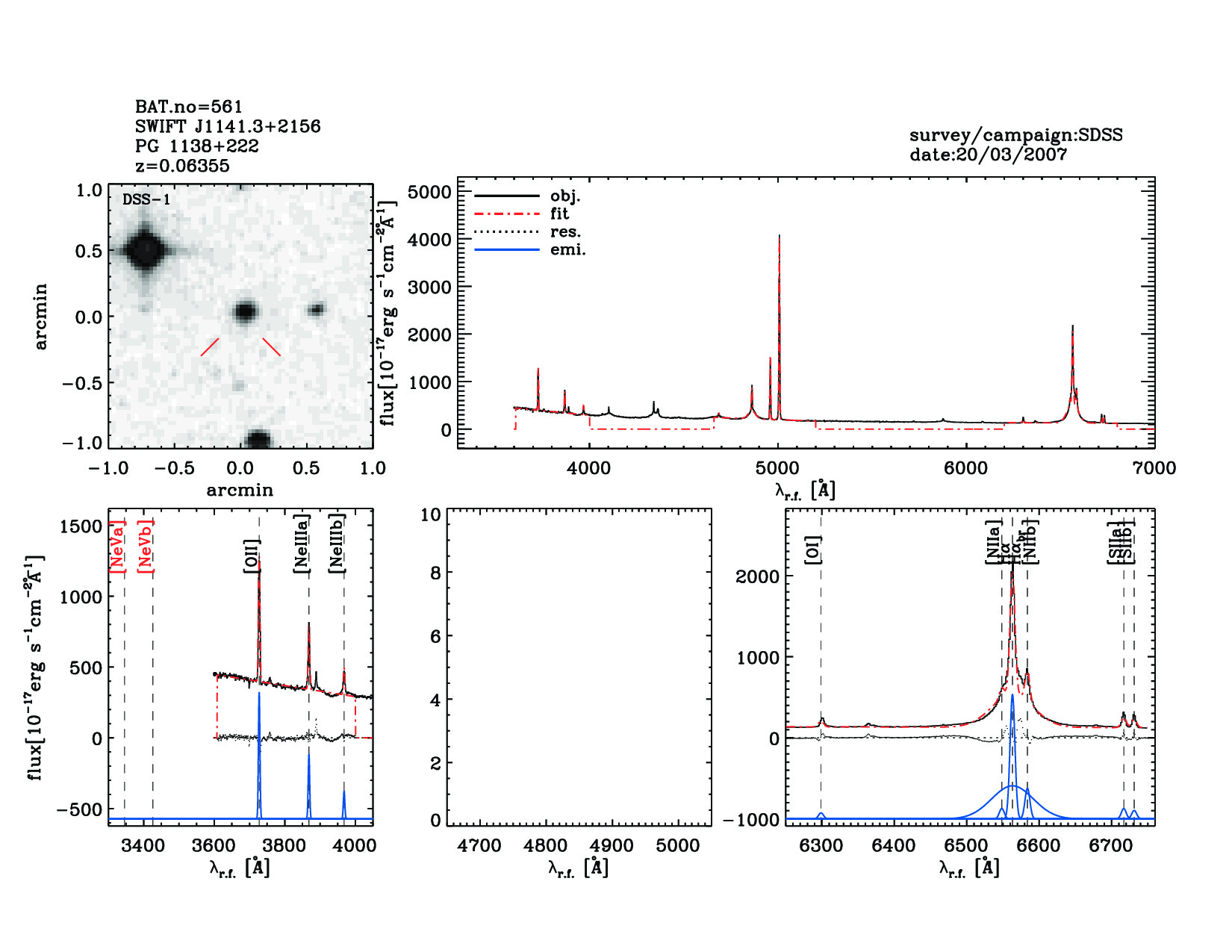 | 561 | SWIFT J1141.3+2156 | PG 1138+222 | 175.3173 | 21.9394 | 0.06355 | 6.60 | 18.30 | 6.70 | 15.70 | 20.00[20.00-20.00] | 1.86(0.04,0.08) | optical | NED |