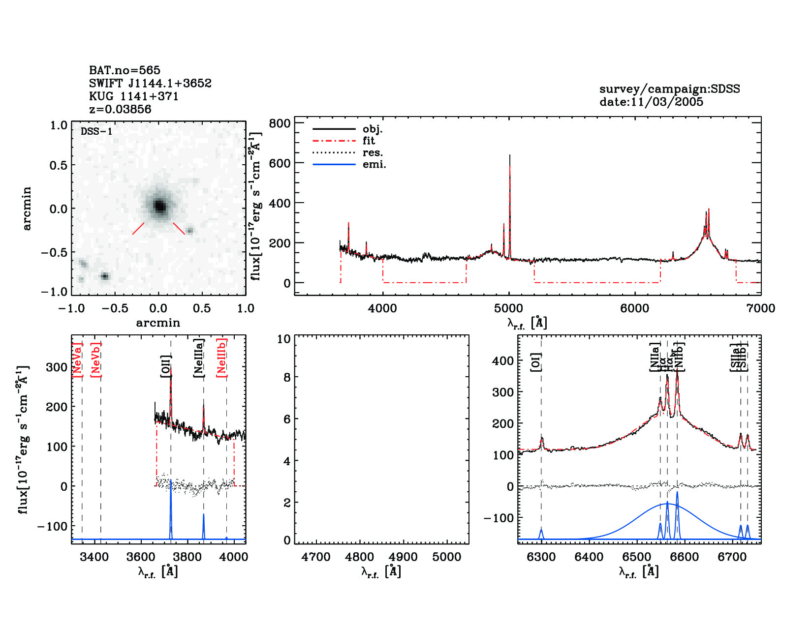 | 565 | SWIFT J1144.1+3652 | KUG 1141+371 | 176.124 | 36.886 | 0.03856 | 1.60 | 15.40 | 1.60 | 13.40 | 21.40[21.20-21.71] | 1.72(0.27,0.17) | optical | NED |