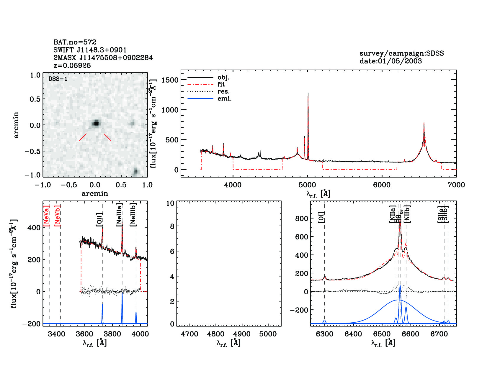 | 572 | SWIFT J1148.3+0901 | 2MASX J11475508+0902284 | 176.9795 | 9.0413 | 0.06926 | 5.10 | 11.90 | 5.40 | 11.80 | 20.00[20.00-20.00] | 1.51(0.31,0.18) | optical | NED |