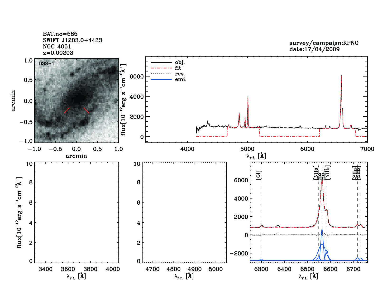 | 585 | SWIFT J1203.0+4433 | NGC 4051 | 180.7901 | 44.5313 | 0.00203 | 17.60 | 39.50 | 18.40 | 38.10 | 20.00[20.00-20.00] | 1.70(0.11,0.05) | optical | NIR | NED |