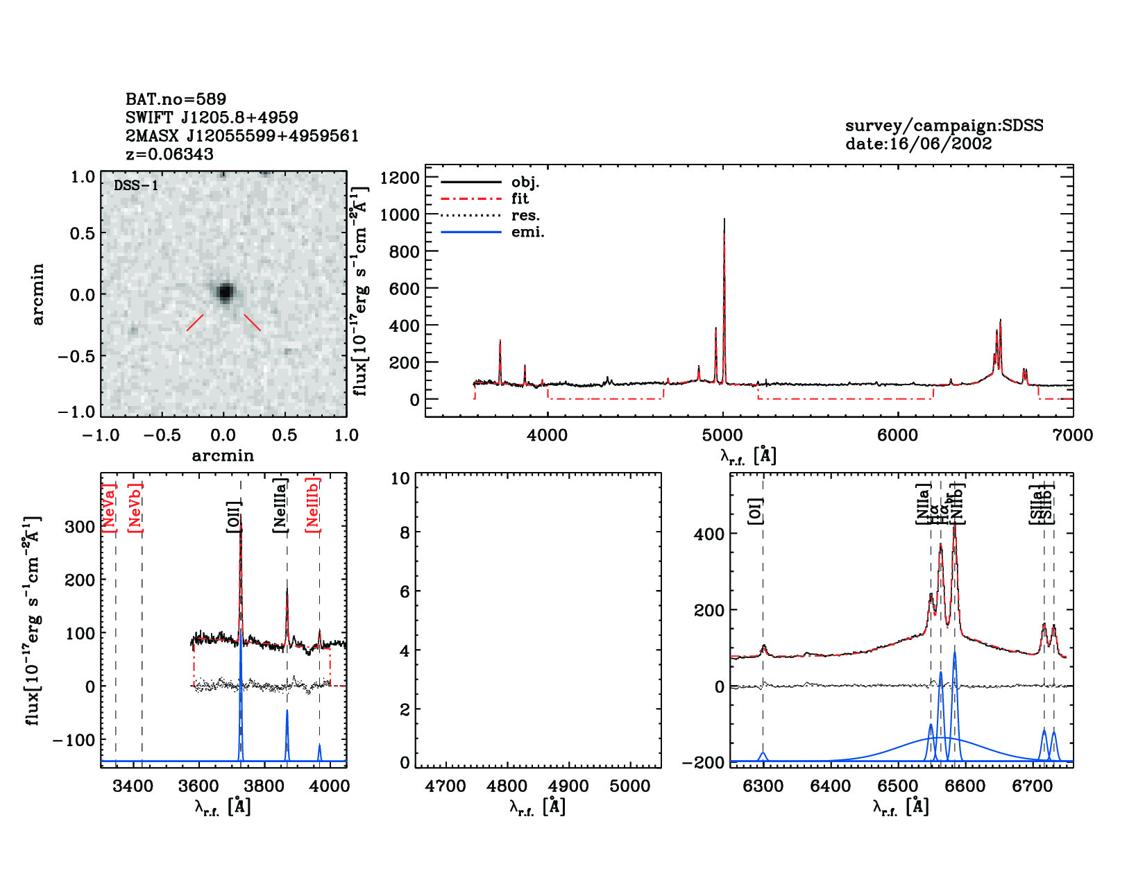 | 589 | SWIFT J1205.8+4959 | 2MASX J12055599+4959561 | 181.4834 | 49.999 | 0.06343 | 1.20 | 10.30 | 1.20 | 8.80 | 20.00[20.00-20.00] | 1.19(0.17,0.17) | optical | NED |