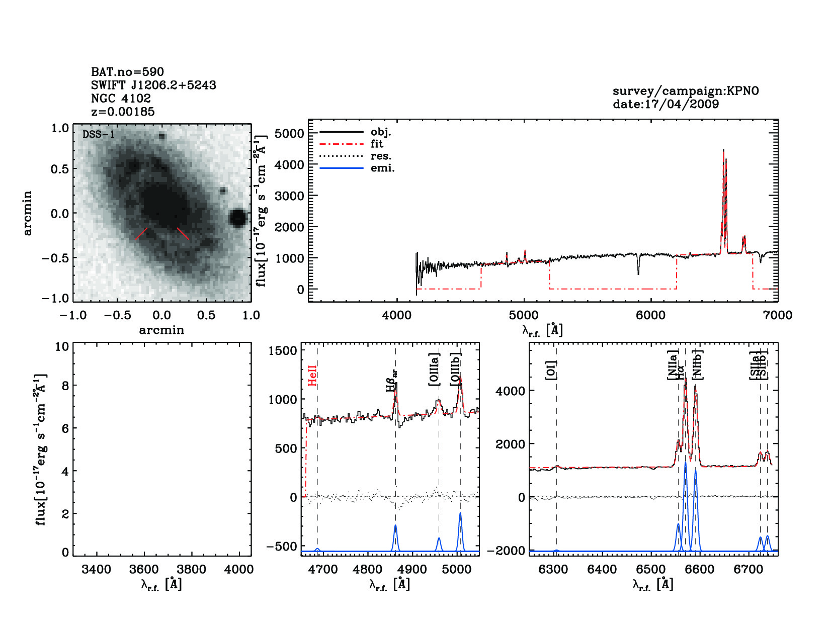 | 590 | SWIFT J1206.2+5243 | NGC 4102 | 181.5963 | 52.7109 | 0.00185 | 0.50 | 27.90 | 26.60 | 71.80 | 24.18[24.06-24.27] | 1.80(0.18,0.23) | optical | NIR | NED |