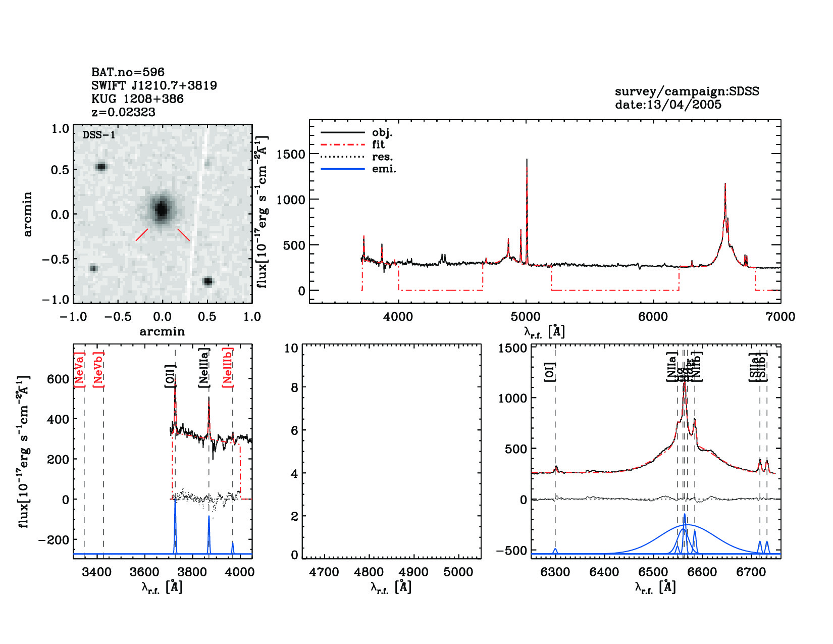 | 596 | SWIFT J1210.7+3819 | KUG 1208+386 | 182.684 | 38.336 | 0.02323 | 3.10 | 20.70 | 4.50 | 19.90 | 22.80[22.73-22.86] | 1.73(0.13,0.14) | optical | NED |