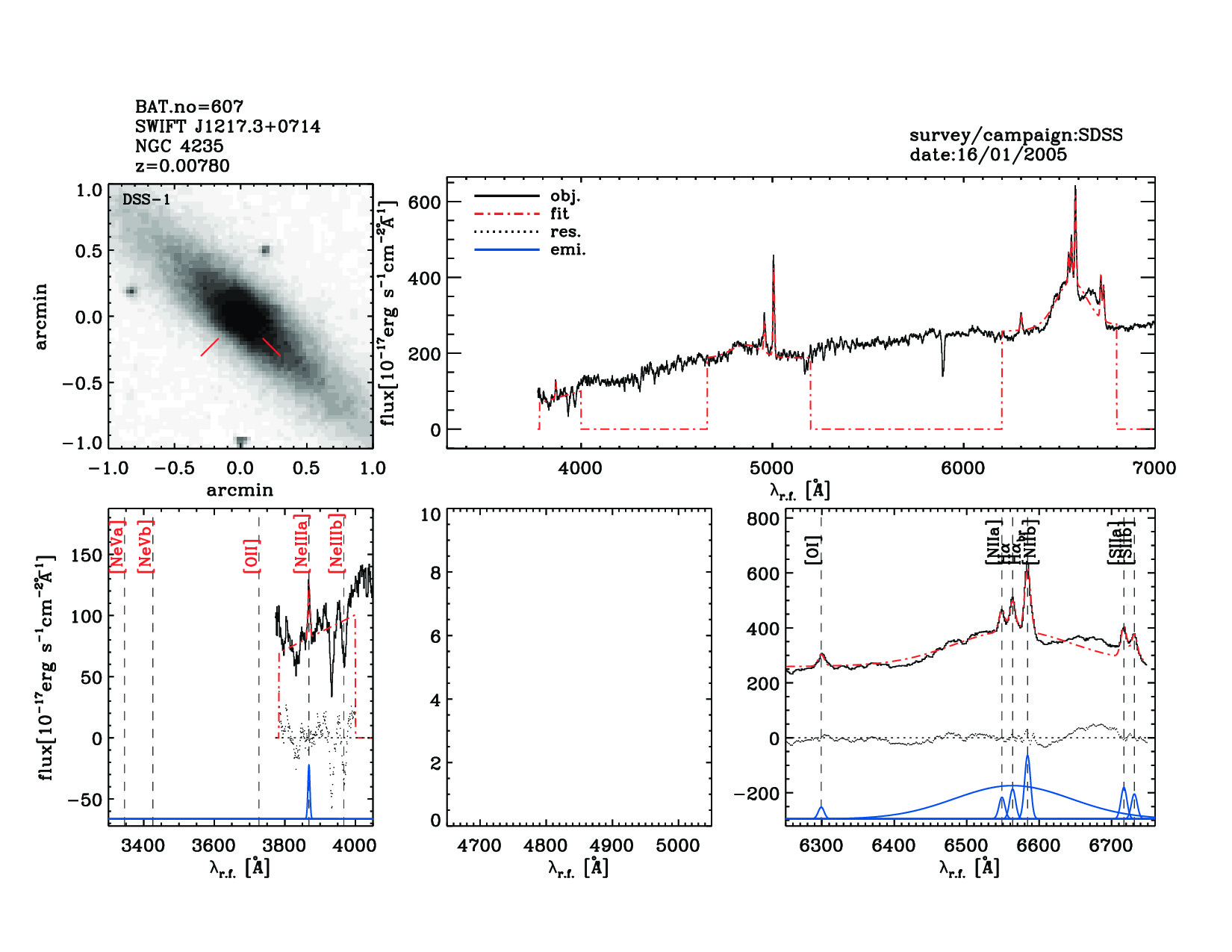 | 607 | SWIFT J1217.3+0714 | NGC 4235 | 184.2912 | 7.1916 | 0.00780 | 2.80 | 32.50 | 2.80 | 30.50 | 21.26[21.18-21.30] | 1.90(0.13,0.16) | optical | NIR | NED |