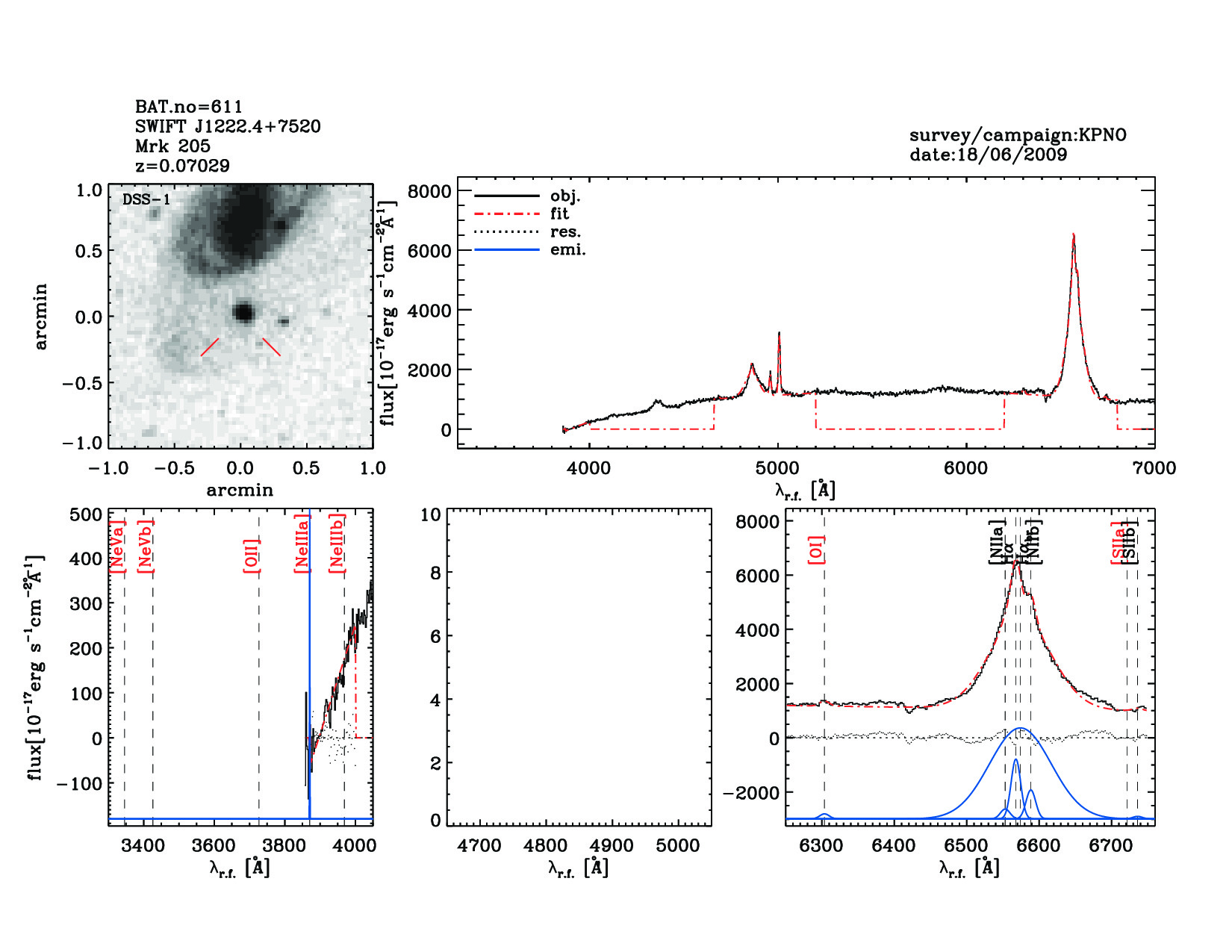 | 611 | SWIFT J1222.4+7520 | Mrk 205 | 185.4333 | 75.3107 | 0.07029 | 6.80 | 15.80 | 6.70 | 17.30 | 20.00[20.00-20.00] | 2.05(0.10,0.09) | optical | NED |