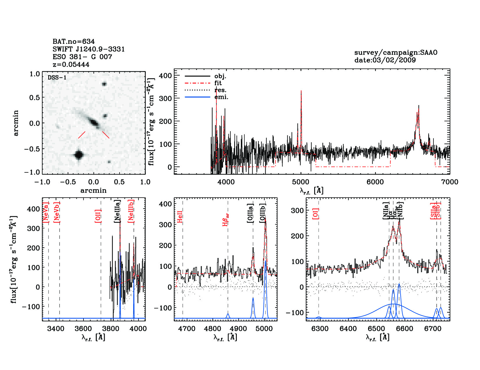 | 634 | SWIFT J1240.9-3331 | ESO 381- G 007 | 190.1956 | -33.57 | 0.05444 | 6.40 | 15.70 | 6.50 | 16.50 | 20.00[20.00-20.00] | 1.82(0.05,0.06) | optical | NED |