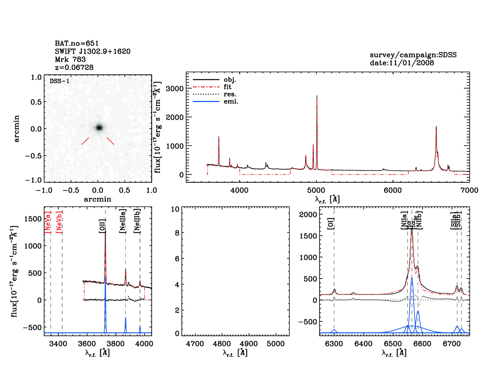 | 651 | SWIFT J1302.9+1620 | Mrk 783 | 195.745 | 16.408 | 0.06728 | 6.90 | 17.20 | 9.70 | 16.80 | 20.78[20.56-21.02] | 1.59(0.15,0.05) | optical | NED |