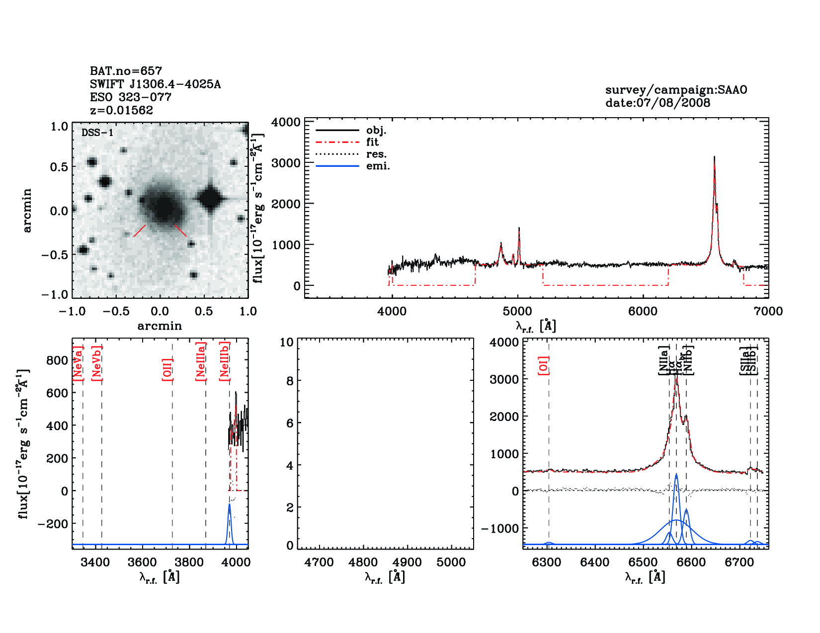 | 657 | SWIFT J1306.4-4025A | ESO 323-077 | 196.6089 | -40.4146 | 0.01562 | 9.20 | 33.10 | 15.10 | 34.50 | 22.81[22.80-22.83] | 2.00(0.10,0.12) | optical | NED |