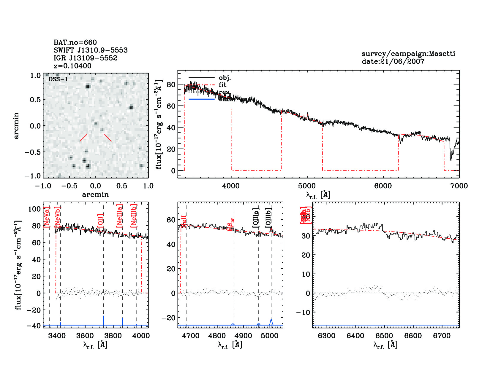 | 660 | SWIFT J1310.9-5553 | IGR J13109-5552 | 197.6795 | -55.86991 | 0.10400 | 5.70 | 32.50 | 6.00 | 34.30 | 21.75[21.59-21.79] | 1.49(0.05,0.17) | optical | NED |