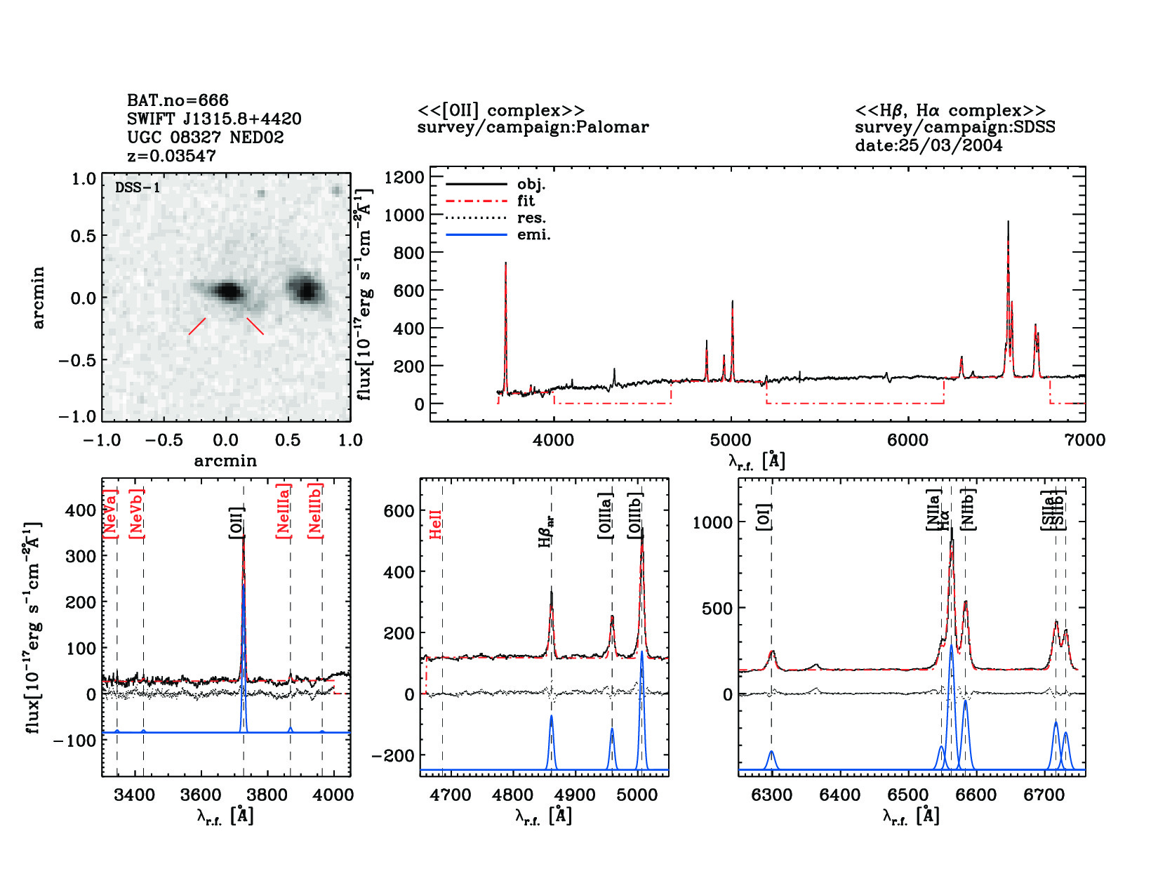 | 666 | SWIFT J1315.8+4420 | UGC 08327 NED02 | 198.822 | 44.4071 | 0.03547 | 7.00 | 17.10 | 11.90 | 17.50 | 22.88[22.83-22.95] | 1.99(0.35,0.43) | optical | NED |