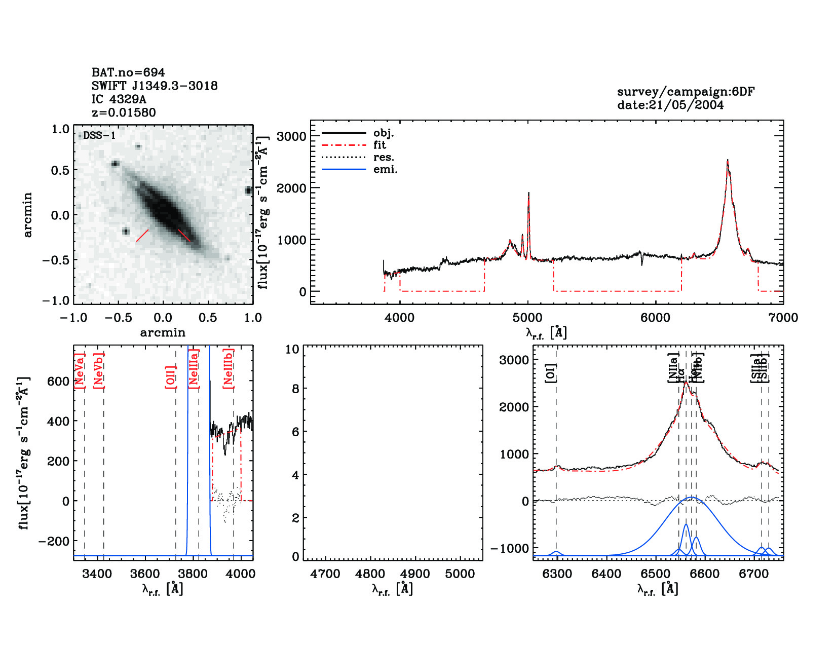 | 694 | SWIFT J1349.3-3018 | IC 4329A | 207.3303 | -30.3094 | 0.01580 | 96.30 | 290.50 | 118.90 | 284.30 | 21.52[21.51-21.53] | 1.89(0.02,0.01) | optical | NED |