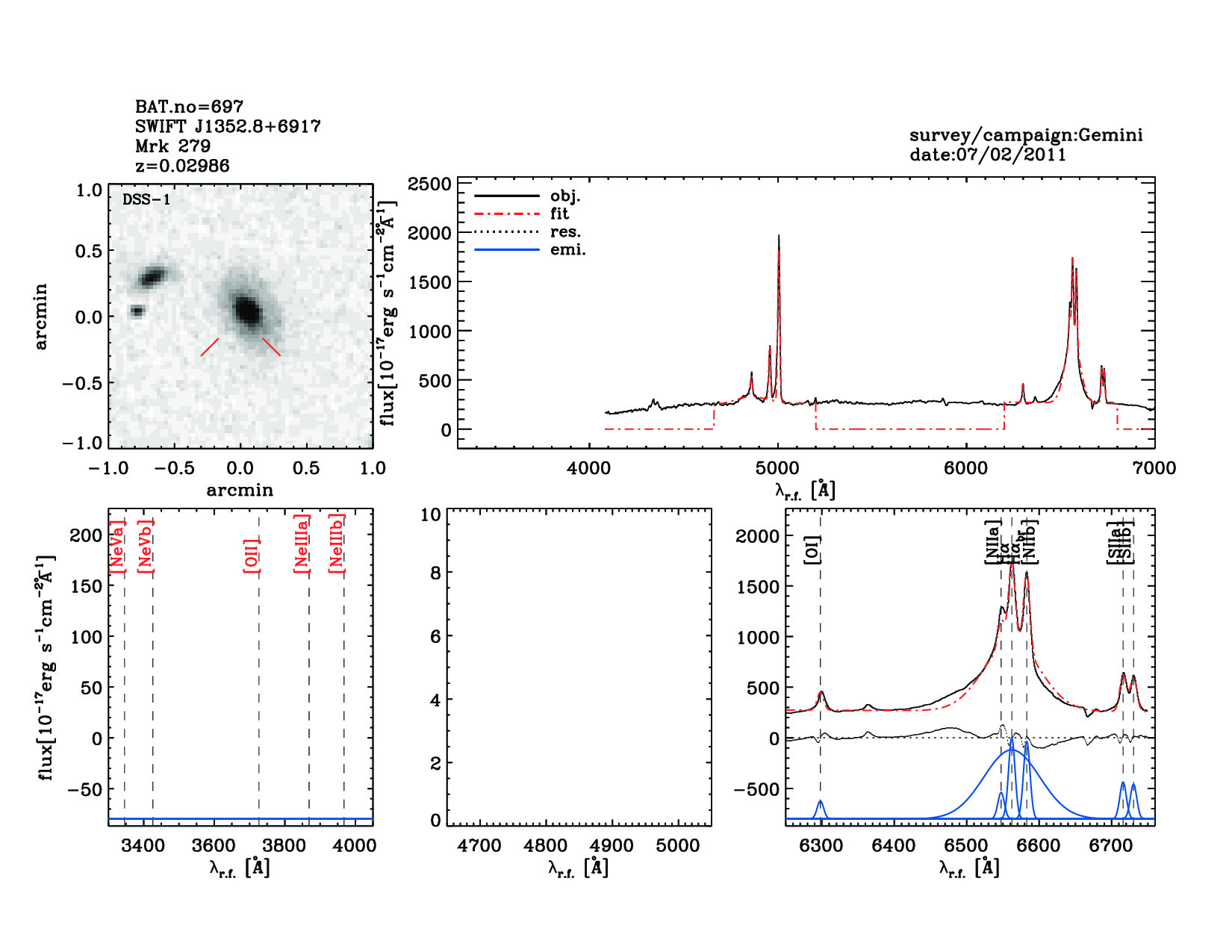 | 697 | SWIFT J1352.8+6917 | Mrk 279 | 208.2644 | 69.3082 | 0.02986 | 12.30 | 39.20 | 12.30 | 38.40 | 20.43[20.28-20.64] | 1.75(0.11,0.05) | optical | NIR | NED |
